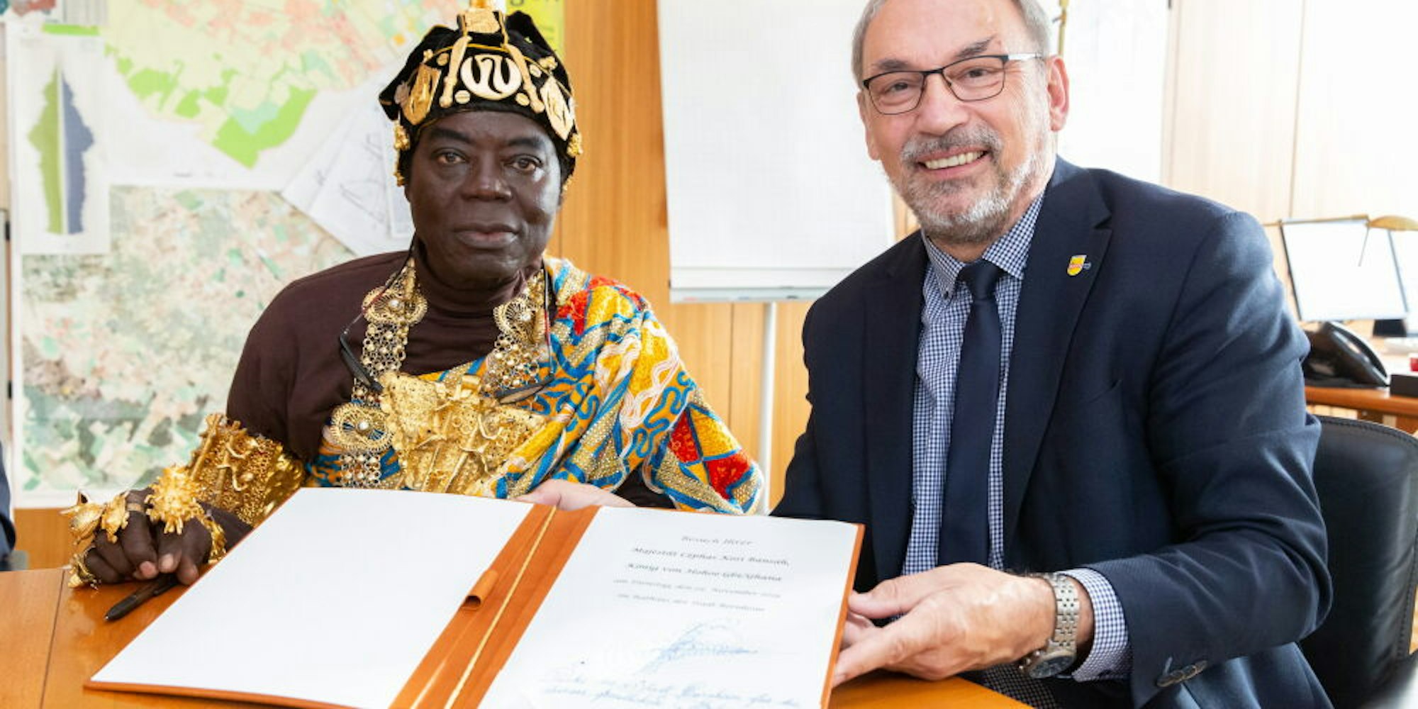 Ein ghanaischer Stammesfürst trug sich ins Goldene Buch der Stadt ein.