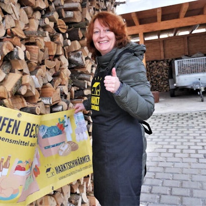 Renate Schlagheck organisiert die Marktschwärmerei in Meckenheim. Der Obsthof Rönn im Ortsteil Ersdorf ist jeden Samstag Anlaufpunkt für mehr als 50 Mitglieder. Schlaghecks Tochter Monika Rönn hatte die Idee, eine eigene Marktschwärmerei in Meckenheim zu initiieren. Mit Ehemann Michael beliefert sie die Bonner Schwärmereien seit mehreren Jahren mit Obst, Gemüse und Säften vom Biohof. Doch Frau Rönn wollte nicht gleichzeitig als Gastgeberin und Erzeugerin auftreten. So übernahm die Mutter die Aufgabe.