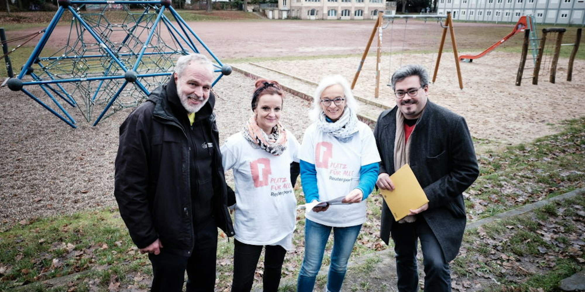 Wollen den Reuterpark umgestalten: (v.l.) Martin Hermann von „Lucky Luke“, Marion Frohn, Susanne Seichter und Gabriel Kunze.