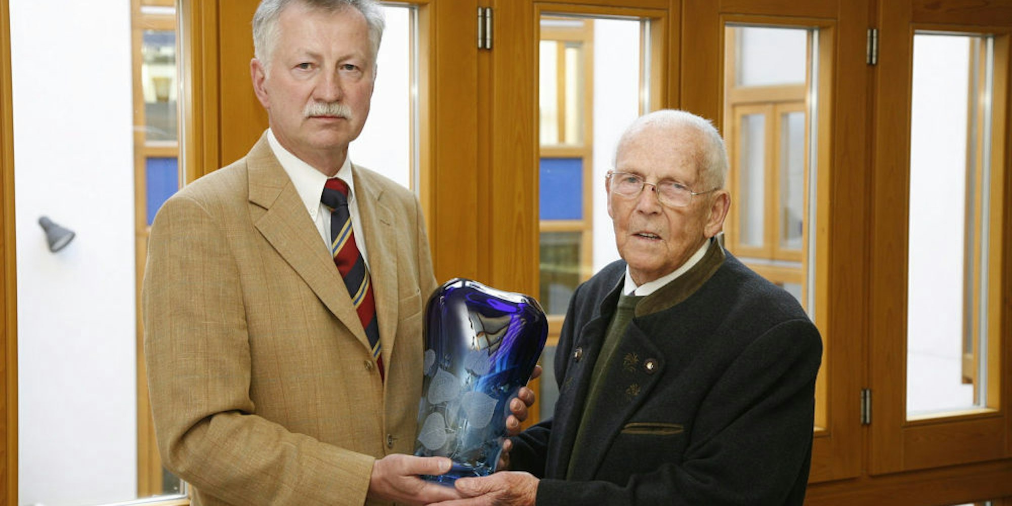 Eine enge Freundschaft pflegte Helfried Glössner auch zu dem Rheinbacher Glasschleifer und -veredler Franz Wendler (1913-2007), der ganz in der Nähe von Kamenicky Senov, im nordböhmischen Haida, aufgewachsen war. Mit ihm gab Glössner immer wieder Impulse für das Glashandwerk, die Förderung des Rheinbacher Glasmuseums und die Unterstützung der Partnerschaft mit Steinschönau. Bürgermeister Stefan Raetz erinnerte gestern zudem daran, dass Glössner auch in seiner Zeit als Regionalbeauftragter der Provinzial viel Gutes für Rheinbach getan habe.