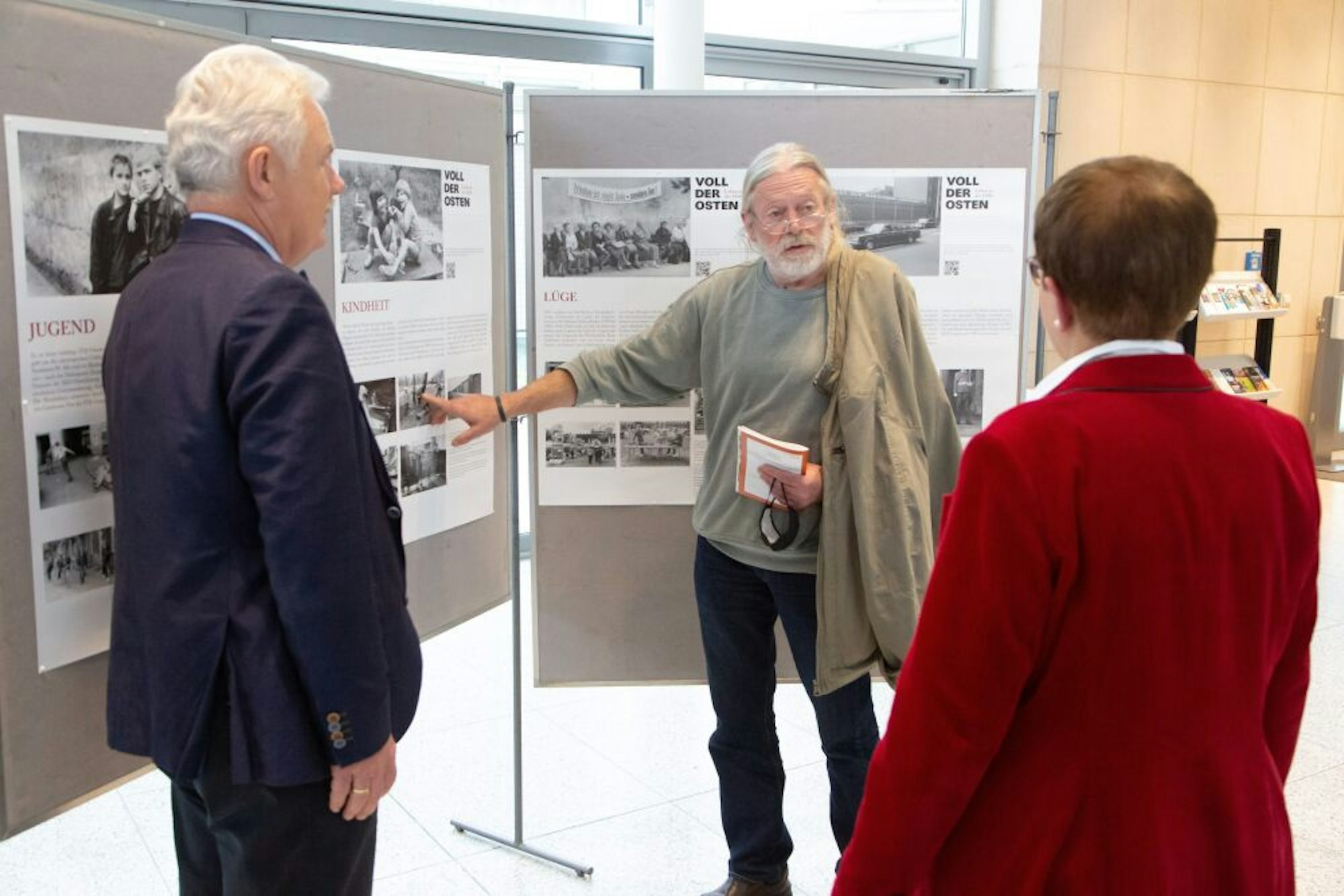 Seine Erinnerungen an die DDR teilte Harald Hauswald in Rheinbach mit Bürgermeister Raetz und Kristina Federau.