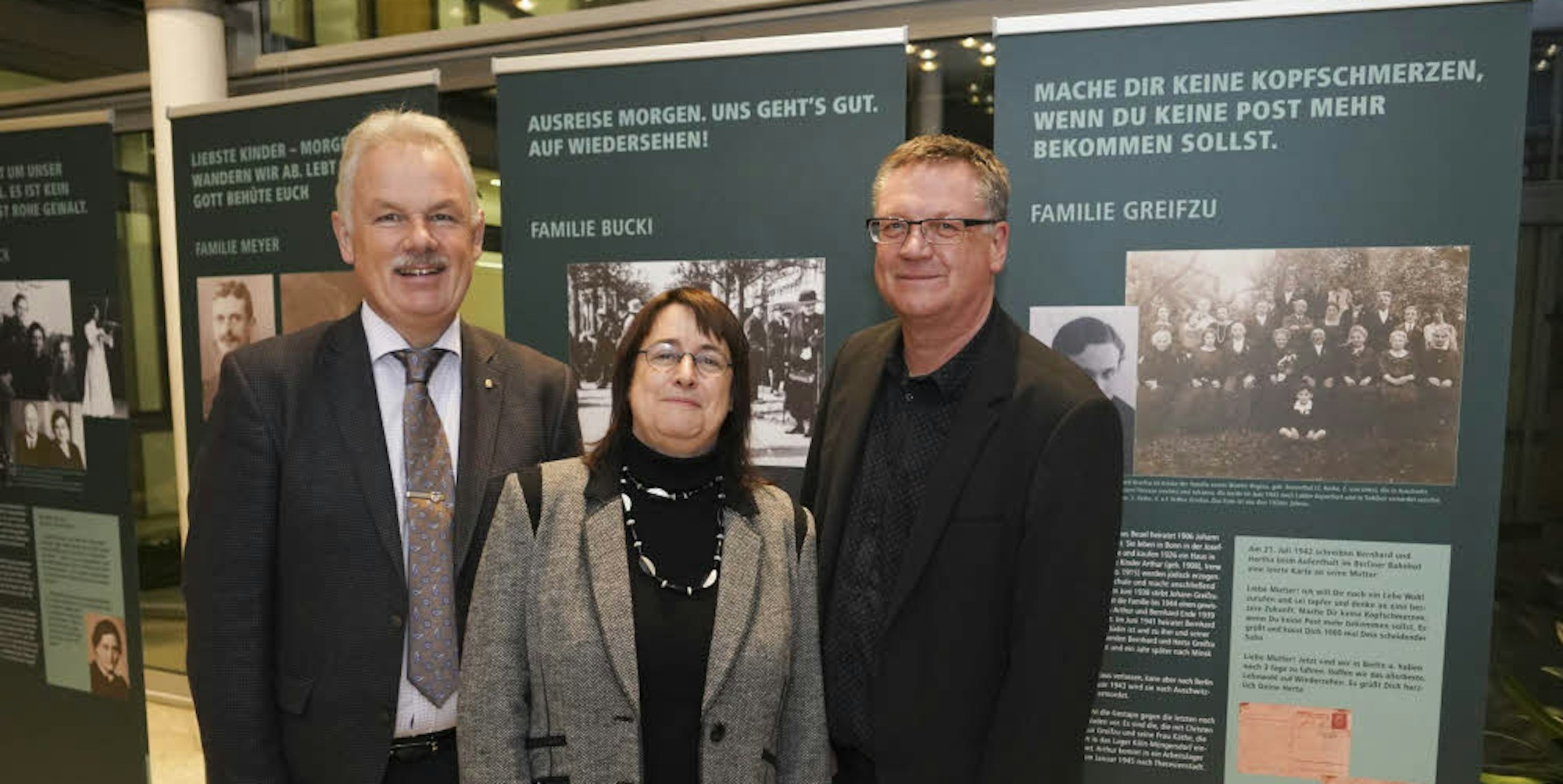 Astrid Mehmet, Leiterin der Gedenkstätte Bonn, eröffnete die Ausstellung mit Stefan Raetz und Archivar Dietmar Pertz (r.).