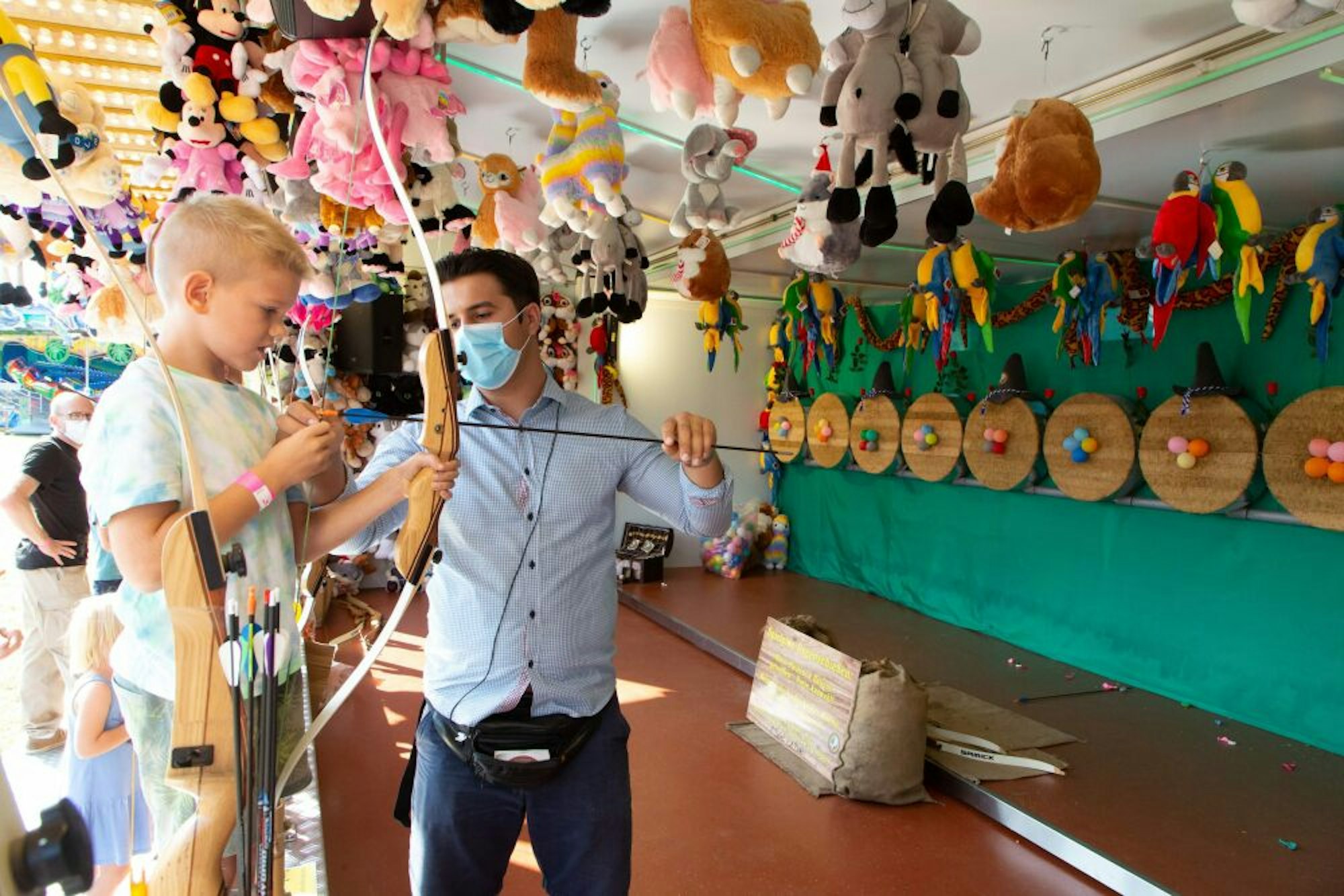 Mit ihrer großen Schwester Marie vergnügten sich die Brüder am Wochenende auf der Rheinbacher Kirmes. Die Schießbude gleich am Eingang des temporären Freizeitparks in der Nähe der Stadthalle ist eine von rund 30 Attraktionen, die auf der Wiese gleich neben dem Rheinbacher Jugendwohnheim noch bis zum 27. September Vergnügen für Alt und Jung garantieren.