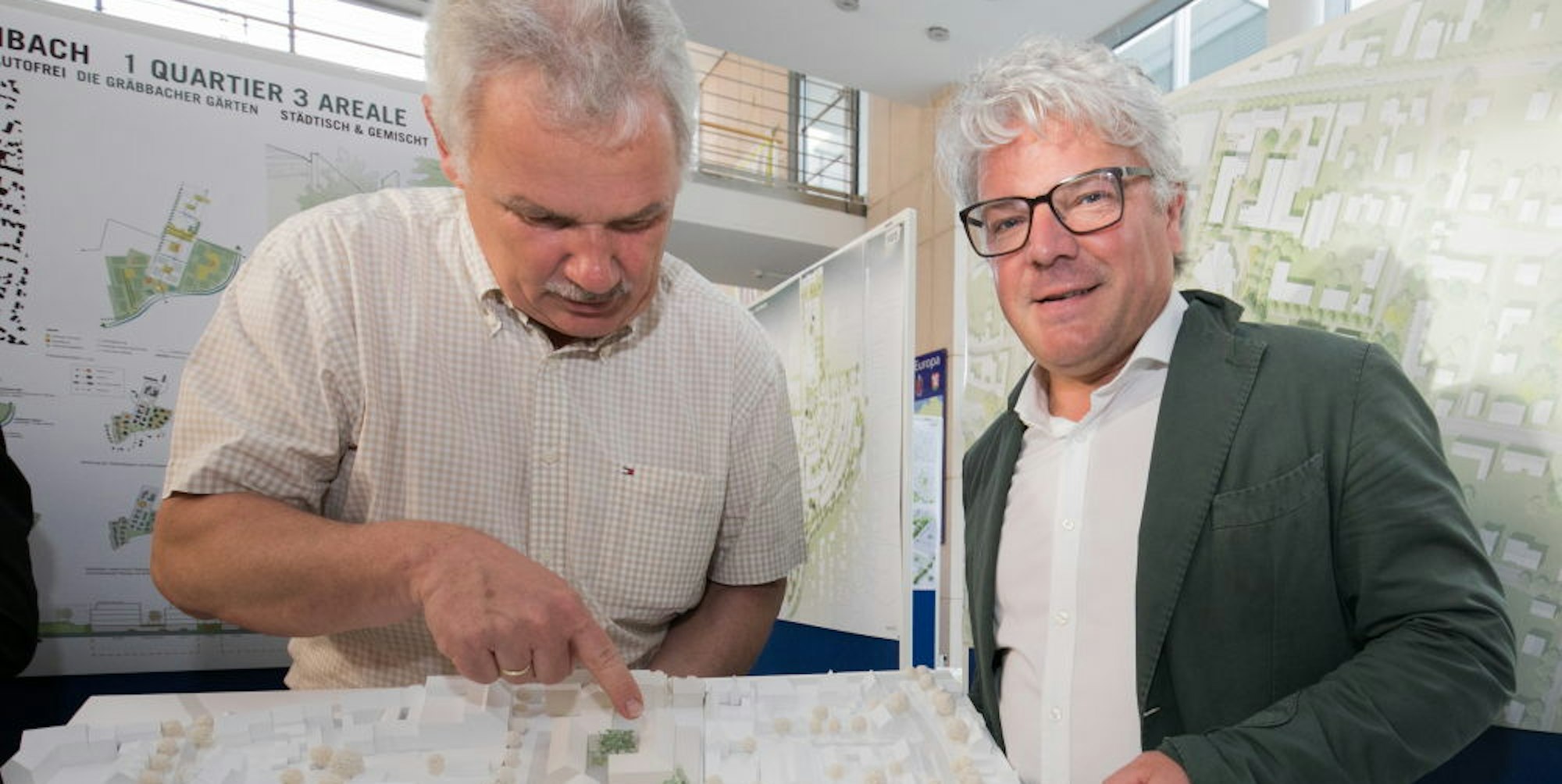 Architekt Peter Berner (r.), hier bei der Vorstellung seines Siegerentwurfs mit Bürgermeister Stefan Raetz im Rathaus, erläuterte seine Pläne jetzt auch im Fachausschuss des Rates.