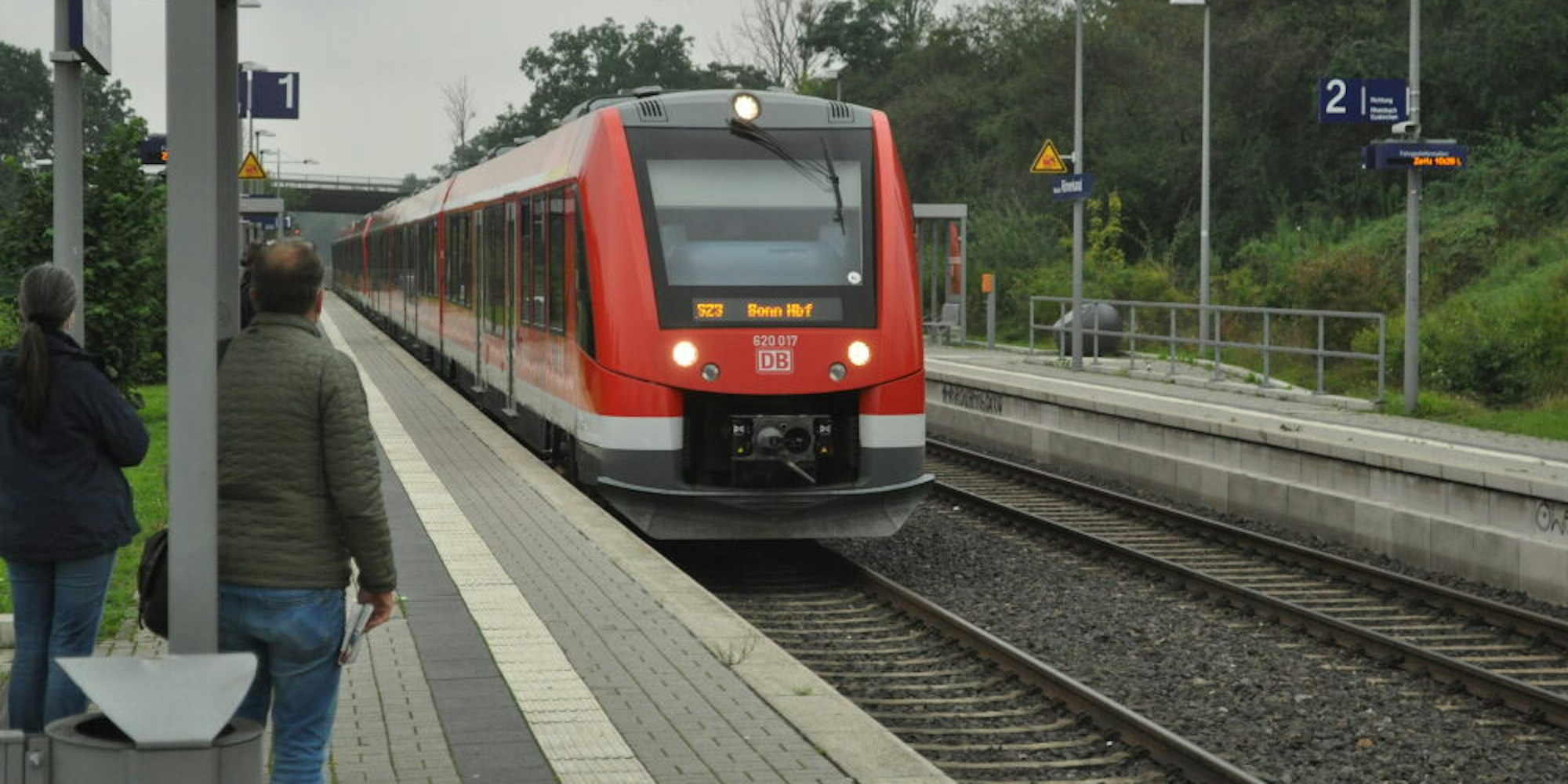 Rheinbach – Mit Pünktlichkeit überraschte die Bahn an diesem Montagvormittag in Rheinbach – und vor allem mit Präsenz. Als die S 23 fahrplanmäßig um 10.22 Uhr auf die Haltestelle „Römerkanal“ zurollt, fällt nicht nur Lars Gelpke ein Stein vom Herzen. Der 24-Jährige hatte zwar nicht so recht daran geglaubt, dass die Bahn wie angekündigt ab diesem Morgen auf der im Unwetter Mitte Juli zerstörten Strecke fahren kann, doch er hatte fest darauf gesetzt, dass die Zeit mit dem Schienenersatzverkehr (SEV) ein Ende hat. „Wenn der Zug jetzt nicht gekommen wäre, hätte ich schnell nach Haue radeln müssen und mit dem Auto nach Bonn-Duisdorf fahren müssen.“ Dort leistet der 24-Jährige bei einer Hilfsorganisation ein Freiwilliges Soziales Jahr ab. „Mit dem Auto fahre ich aber ungern. Dann stehe ich im Verkehr, und mit dem Geld, das ich für die Arbeit bekomme, kann ich es eigentlich auch nicht bezahlen.“ Darum habe er ja die Jahreskarte der Bahn.