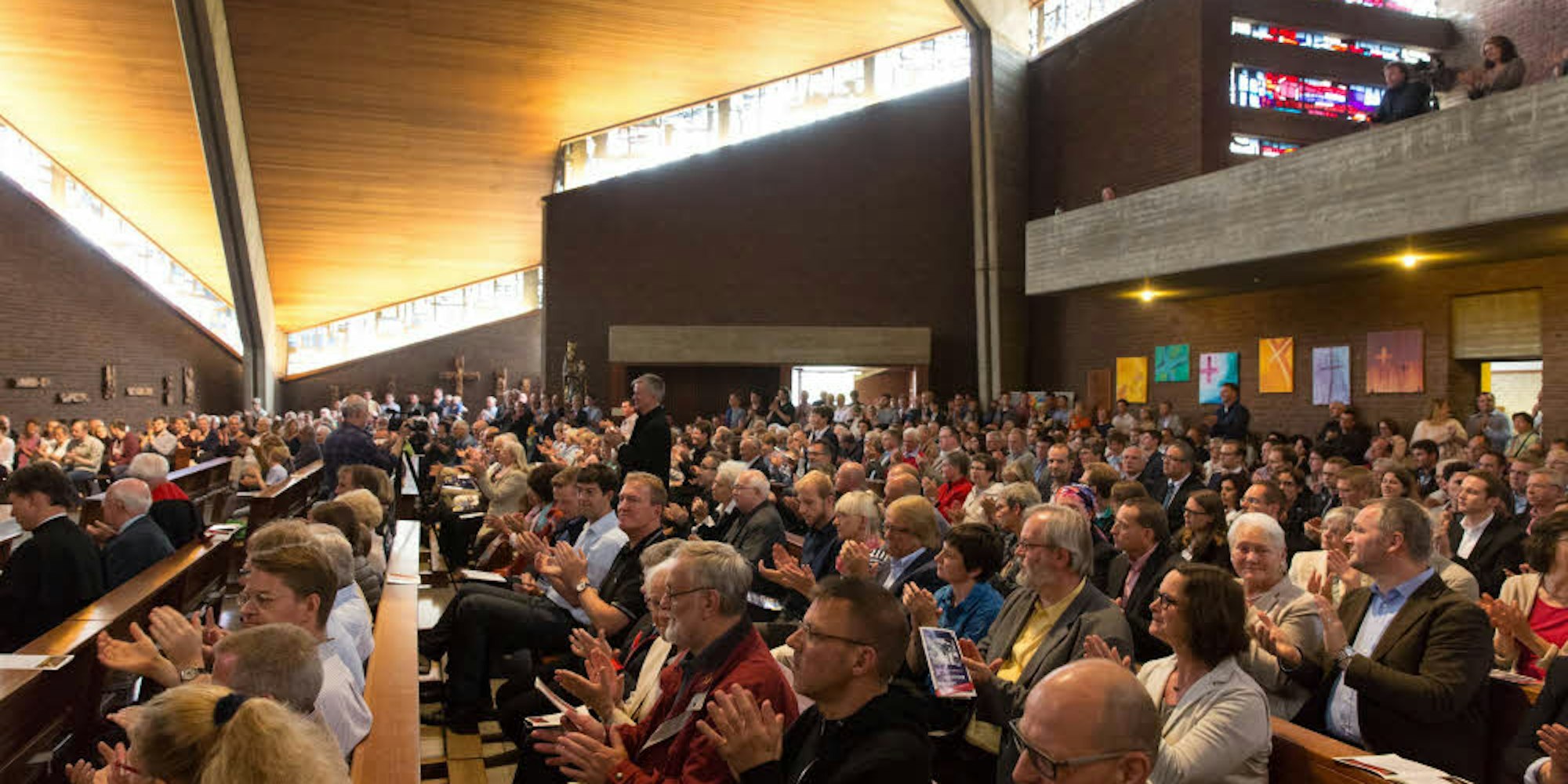 Die Resonanz war enorm: Fast zwei Stunden dauerte der Gottesdienst in der überfüllten Pallotti-Kirche, der musikalisch von zahlreichen ehemaligen Schülern umrahmt wurde.