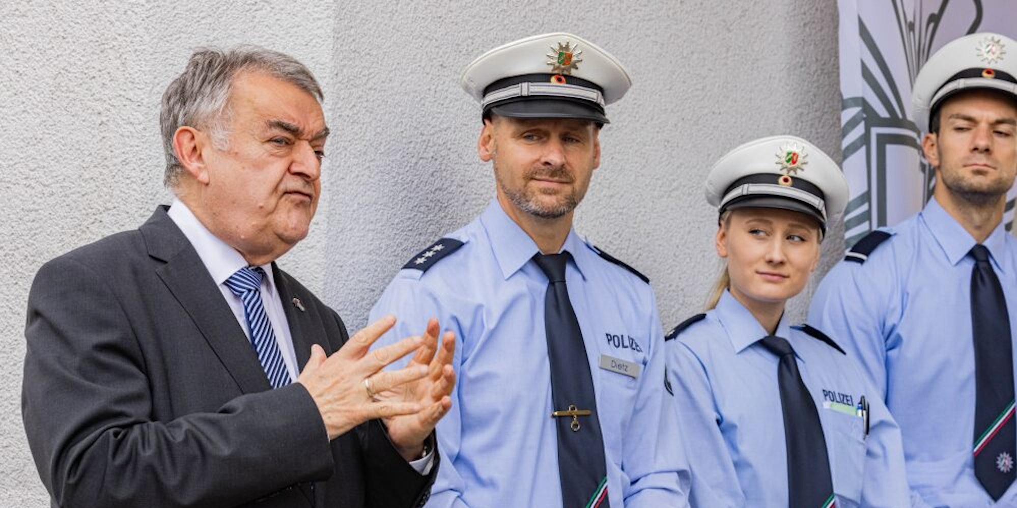 Innenminister Herbert Reul betonte die Werbewirksamkeit der flotten Wiederinbetriebnahme der Wache in Rheinbach.