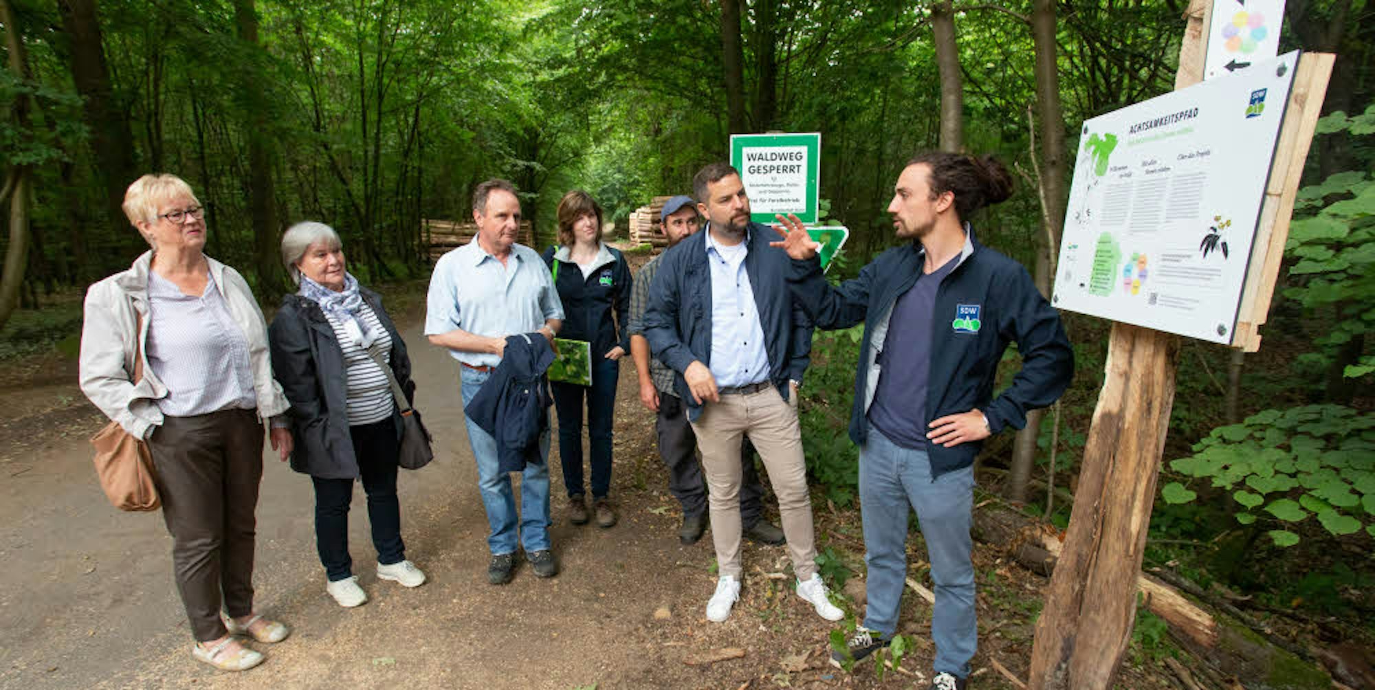 Auf dem Achtsamkeitspfad: SDW-Bundesgeschäftsführer Christoph Rullmann (2.v.r.) und seine Mitarbeiter erklären das Projekt.
