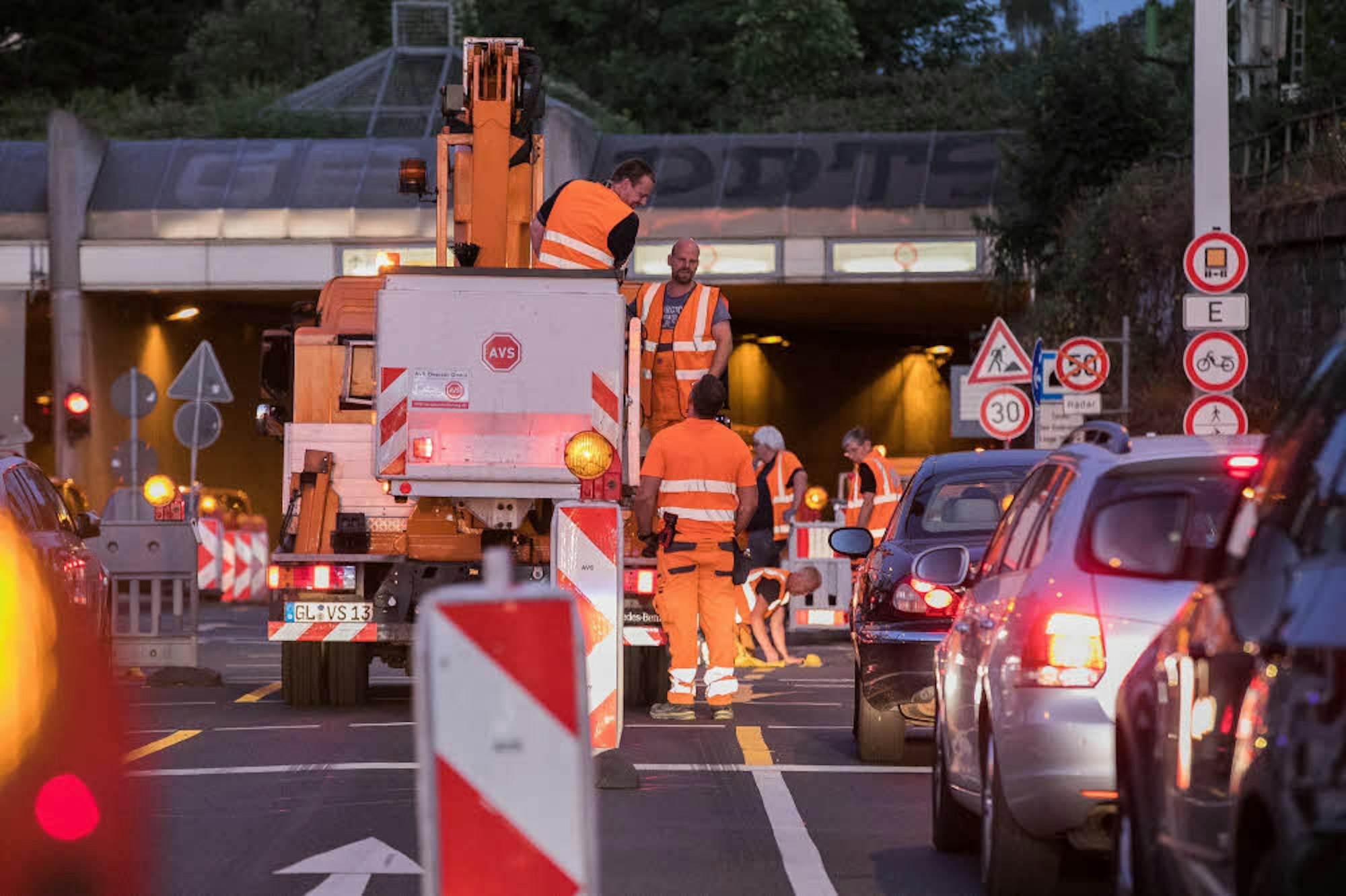 Extraschicht für die Arbeiter: In der Nacht von Freitag auf Samstag wurde die Verkehrsführung im Tunnel geändert.