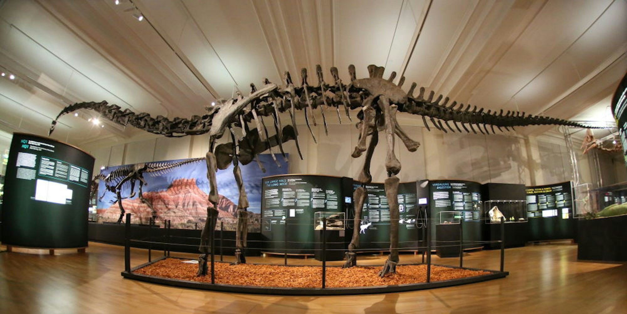 Stattliche Erscheinung: 27 Meter lang ist das Skelett des Sauropoden „Arapahoe“, das in der Ausstellung zu sehen ist.