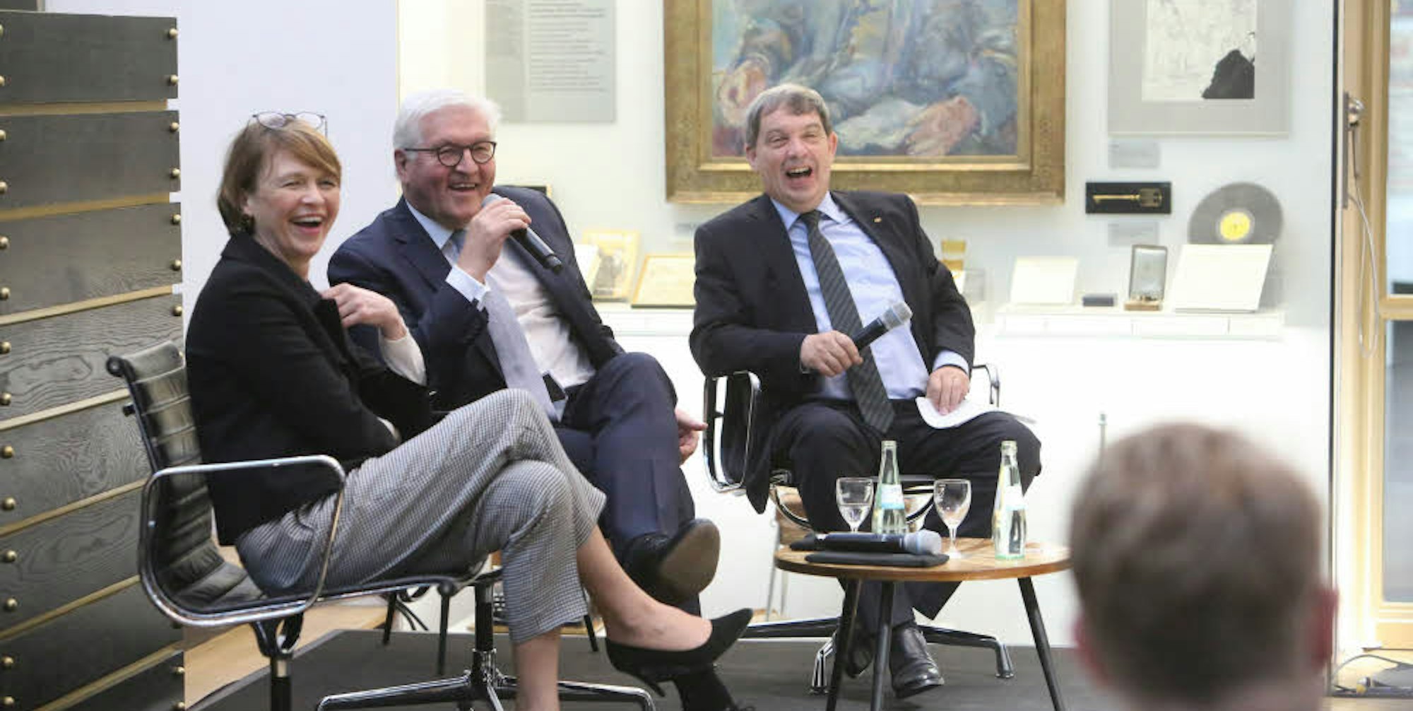 Dieses Foto mit Elke Büdenbender, Frank-Walter Steinmeier und Moderator Hans-Walter Hütter (v.l.) belegt, dass es im Haus der Geschichte gestern nicht „tierisch ernst“ zuging.