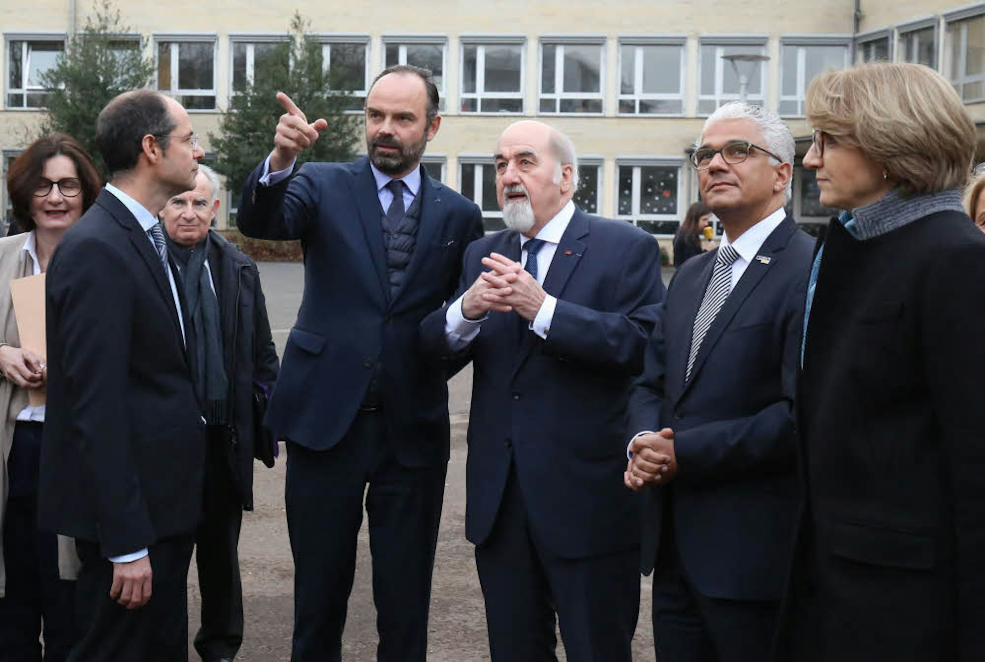 Bonn – Ein großer Presserummel mit zahlreichen Kamerateams, Polizeiwagen und schwarzen Nobelkarossen, aus denen Leibwächter aussteigen. Das Friedrich-Ebert-Gymnasium (FEG) bekam am Donnerstag hohen Besuch. Der französische Premierminister Édouard Philippe war zu Gast und schwelgte dabei in Erinnerungen. Philippe hatte nämlich in den 80er Jahren seine Jugend in Bonn verbracht und an der Französischen Schule, an der sein Vater damals Direktor war, seine Abiturprüfungen abgelegt. Heute steht auf dem Gelände das Gymnasium.