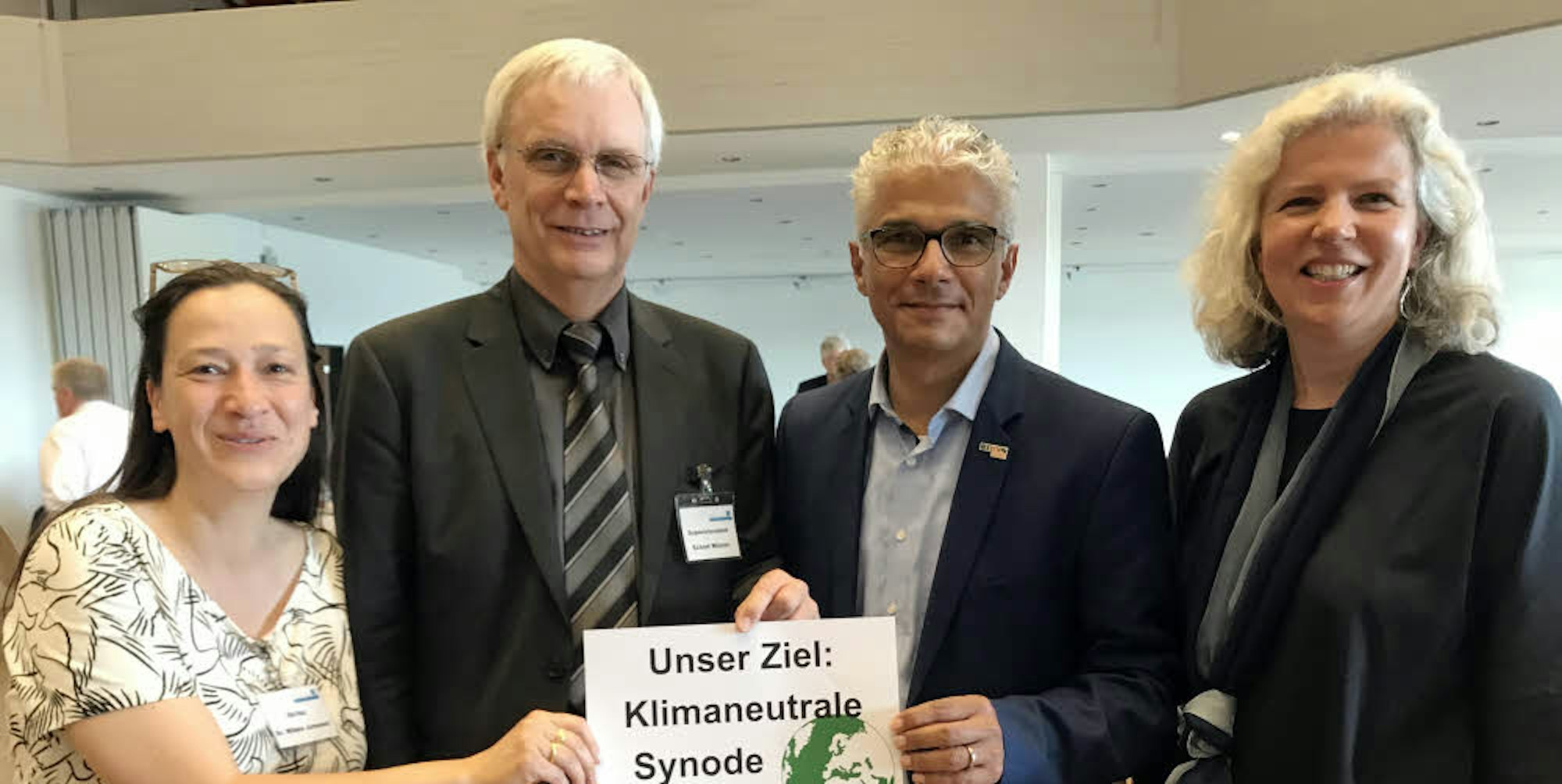 Gemeinsam für das Klima: (v.l.) Pfarrerin Wibke Janssen, Eckart Wüster, OB Sridharan und Presbyterin Susanne Eichhorn.