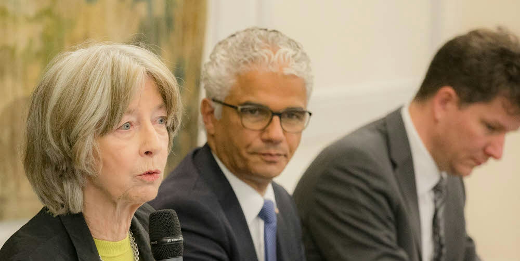 Intendantin Nike Wagner, Geschäftsführer Dettloff Schwerdtfeger (r.) und Oberbürgermeister Ashok Sridharan.