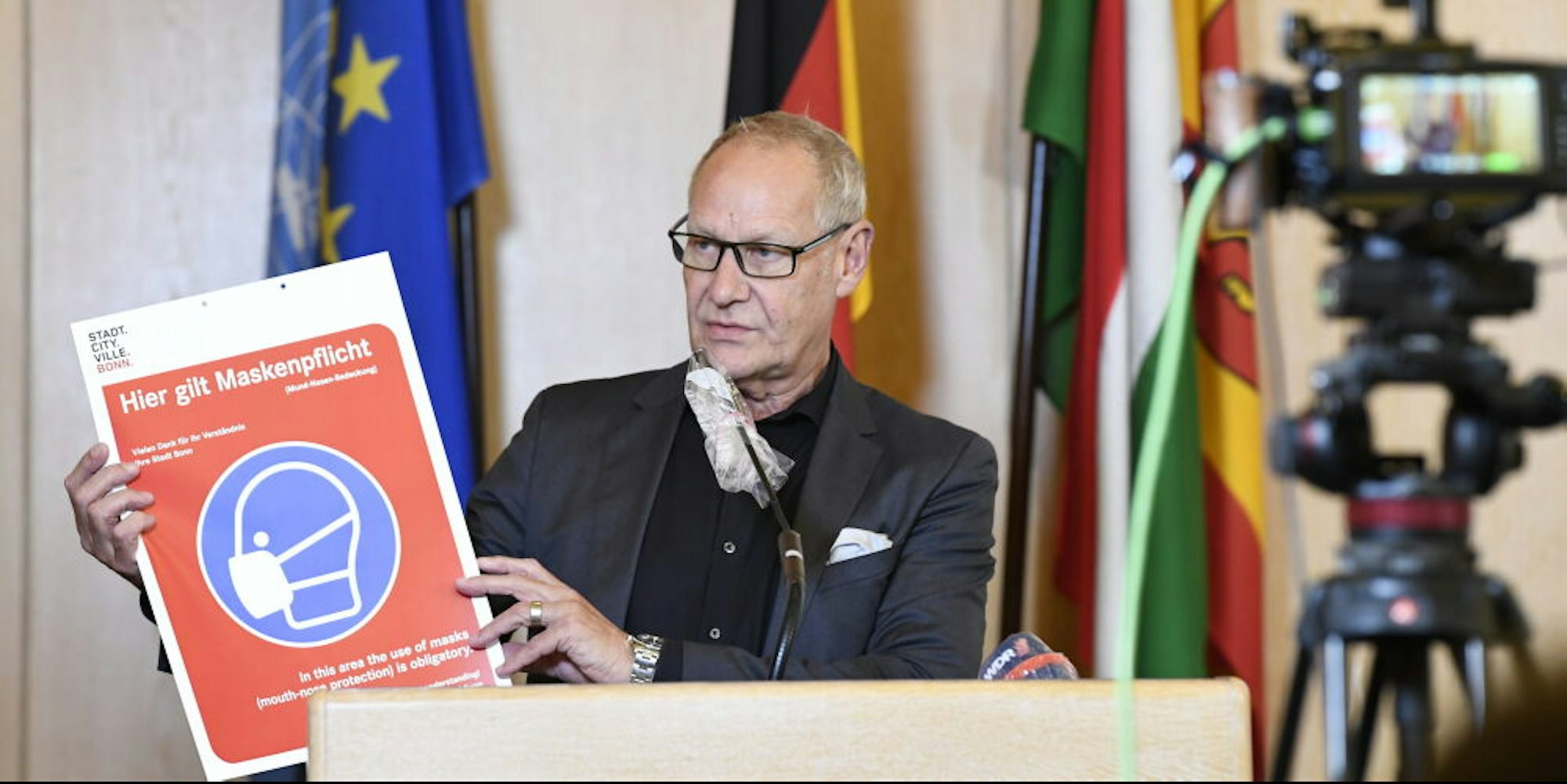 Bonn – Stadtdirektor Wolfgang Fuchs ist vorsichtiger geworden. „Ich gehe hier jeden Meter mit Maske“, sagt er am Freitag, als er bei der städtischen Corona-Pressekonferenz das Mikrofon verlässt. Zuvor hatte er von einer Hochzeit erzählt, auf der er eingeladen war. „Da bin ich nicht hingegangen.“ Zu oft habe er in den vergangenen Wochen gesehen, dass private Feiern zu Infektionsherden werden. Und auch bei der Hochzeit sollte es so sein: „Am Ende war die Hälfte der Gäste mit dem Coronavirus infiziert.“