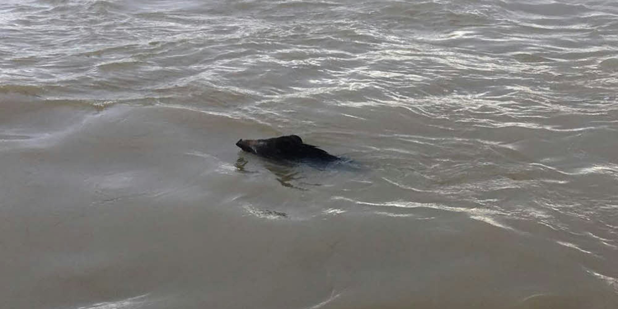 Ende einer Verfolgungsjagd: Schwimmend entzog sich das Wildschwein seinen Jägern, nachdem es zuvor eine Stunde durch Beuel verfolgt worden war und einen Radfahrer umgerannt hatte.
