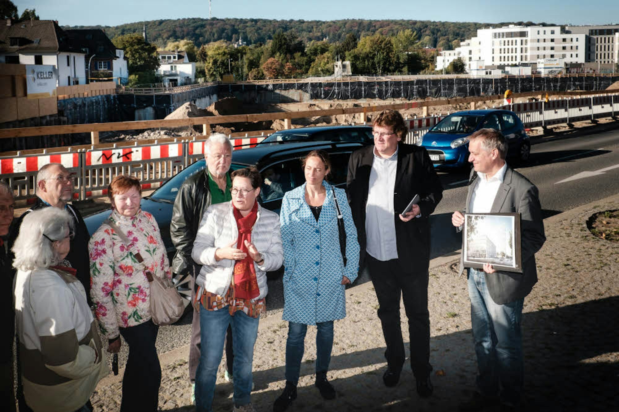 Bonn – Es wird gebaut, und zwar erst einmal in die Tiefe. Drei Stockwerke sollen ausgehoben werden, damit Tiefgaragen und Fahrradstellplätze auf dem Gelände des ehemaligen Bonn-Centers entstehen können. Im Rahmen von „Stadtgestaltung im Dialog“ der Volkshochschule besichtigten interessierte Bonner jetzt mit Yola Thormann vom Bund Deutscher Architekten (BDA) und Michael Lobeck, Kurator und Moderator für Stadtentwicklungsfragen, das Baugrundstück an der Reuterstraße. Zu Gast war außerdem Olaf Drehsen vom Büro JSWD Architekten Köln, das an der Planung und Umsetzung des Projekts „Neuer Kanzlerplatz“ beteiligt ist.