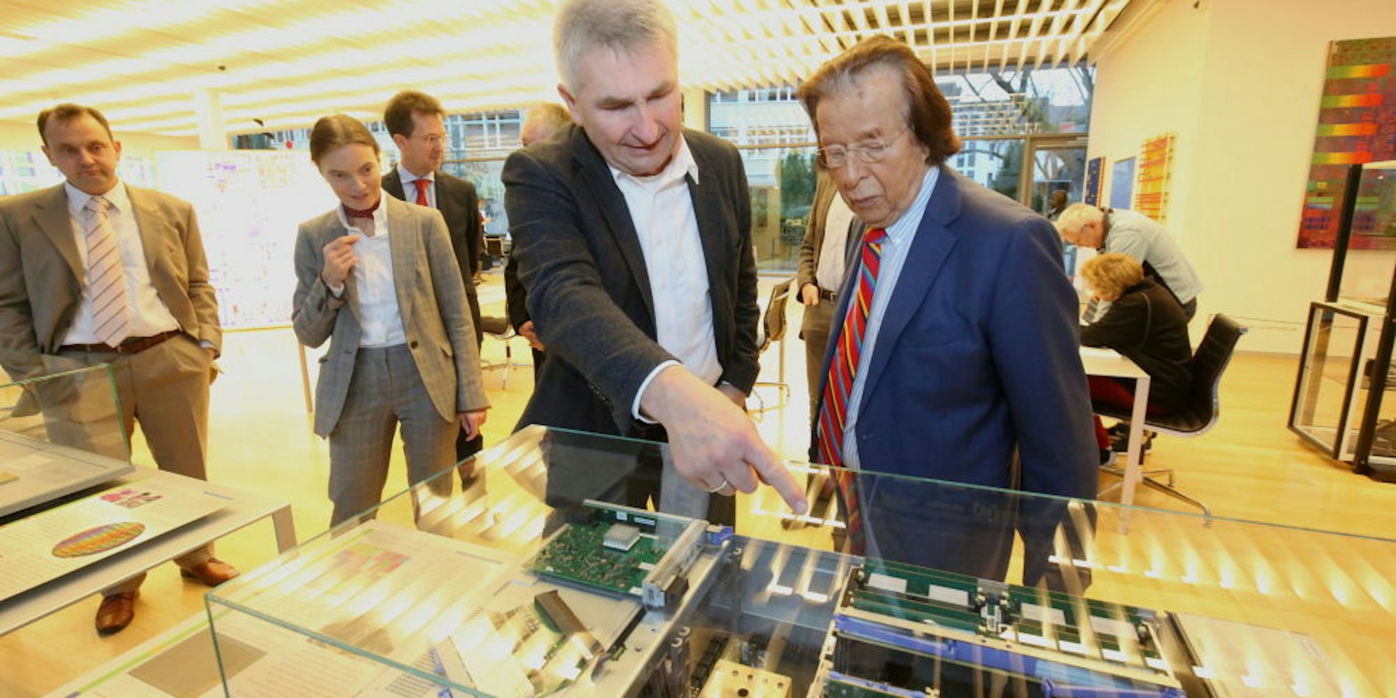 Korte legt noch einen drauf: „Es gibt niemanden außer uns, der so etwas kann.“ Die einzigen, die ebenfalls so viel Potenzial in so einen kleinen Computerchip bekommen, seien die Koreaner. „Wir stehen im Austausch mit Samsung und besuchen bald ein Werk in der Nähe von Seoul“, berichtete Korte dem Minister. Neben dem Fortschritt komme die Frage auf, wo die Grenze liege. „Neue Ideen gibt es viele, aber die Industrie wird vorsichtiger“, sagte der Direktor des Forschungszentrums.