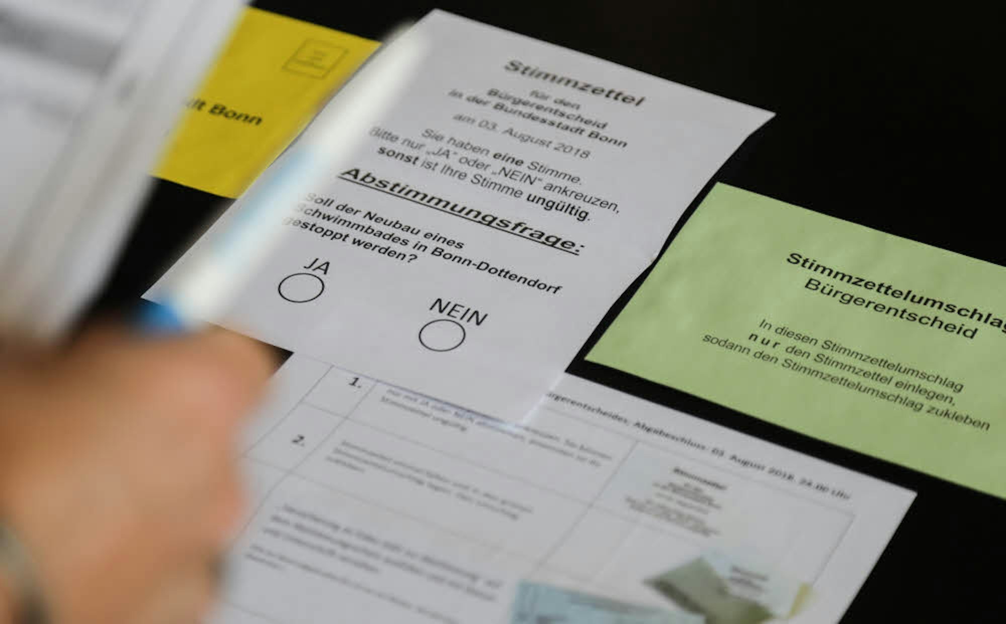 Bis Donnerstagnachmittag haben nach Angaben des städtischen Presseamtes 86.615 von rund 250.000 Wahlberechtigten, das sind gut 34,6 Prozent, ihre Abstimmungsbriefe abgegeben. Geantwortet werden darf im Bürgerentscheid nur mit Ja oder Nein auf die Frage: „Soll der Neubau eines Schwimmbades in Bonn-Dottendorf gestoppt werden?“