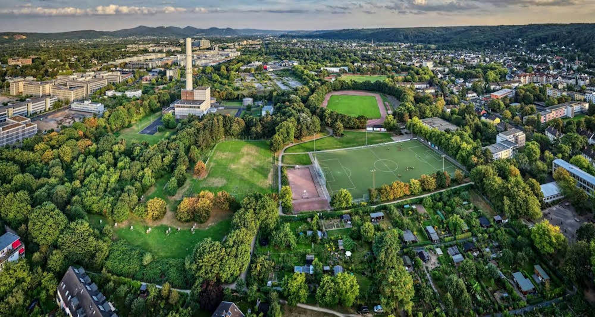 Blick aus der Vogelperspektive auf das Gelände, das für das Wasserlandbad vorgesehen ist. Es soll laut Ratsbeschluss das Franken- und das Kurfürstenbad ersetzen.