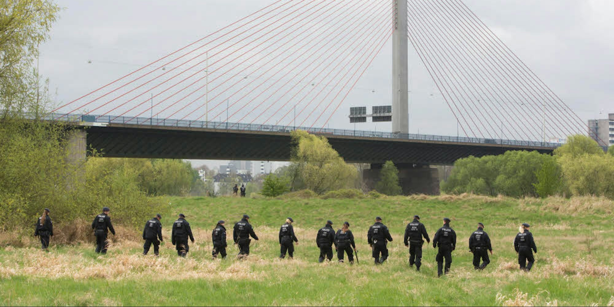 Nach der brutalen Tat am 2. April 2017 durchkämmten Polizisten die Siegaue auf der Suche nach der Tatwaffe.