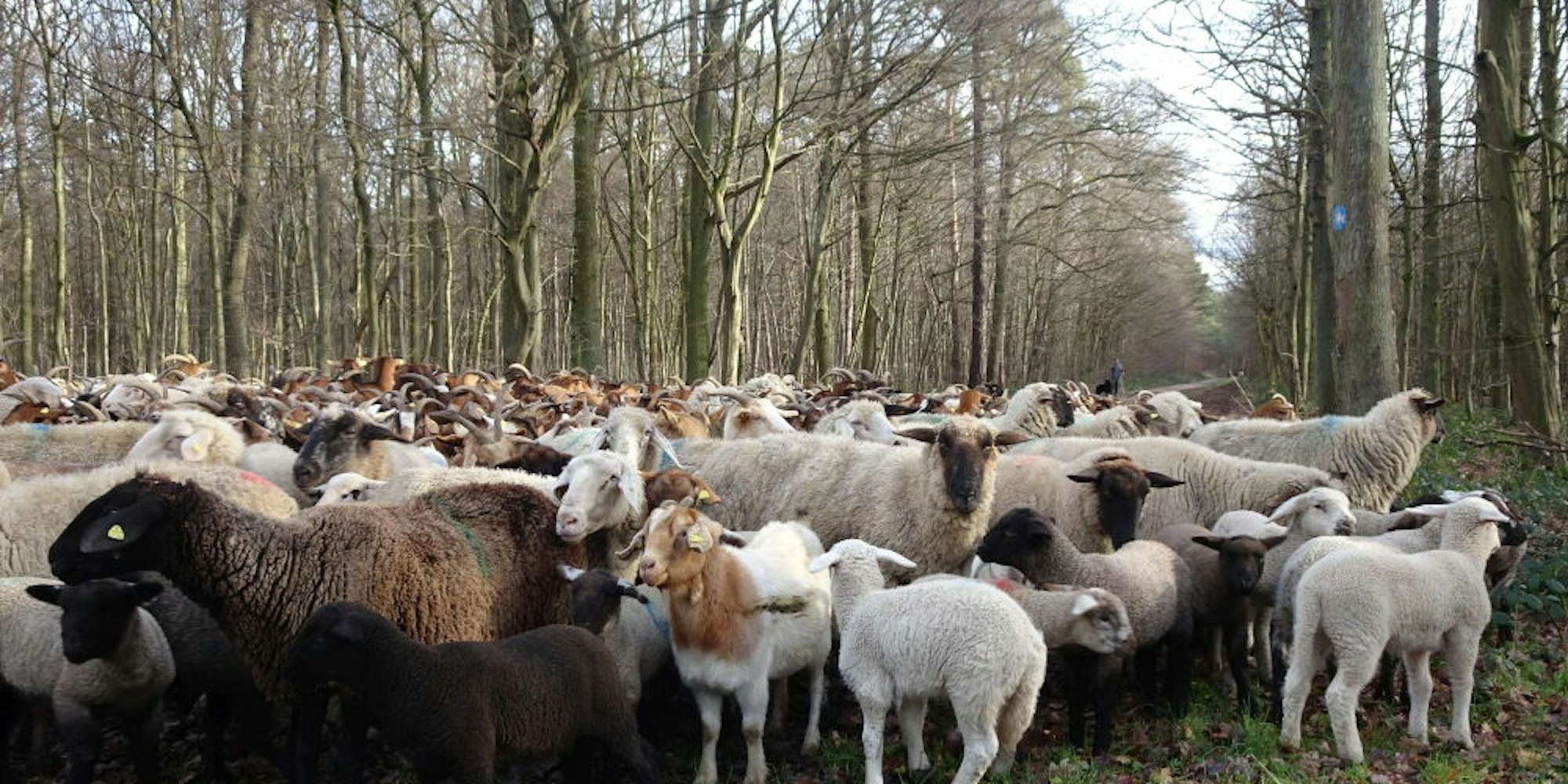 Wanderschäfer Josef Burbach ist mit seiner Herde unterwegs im Kottenforst.