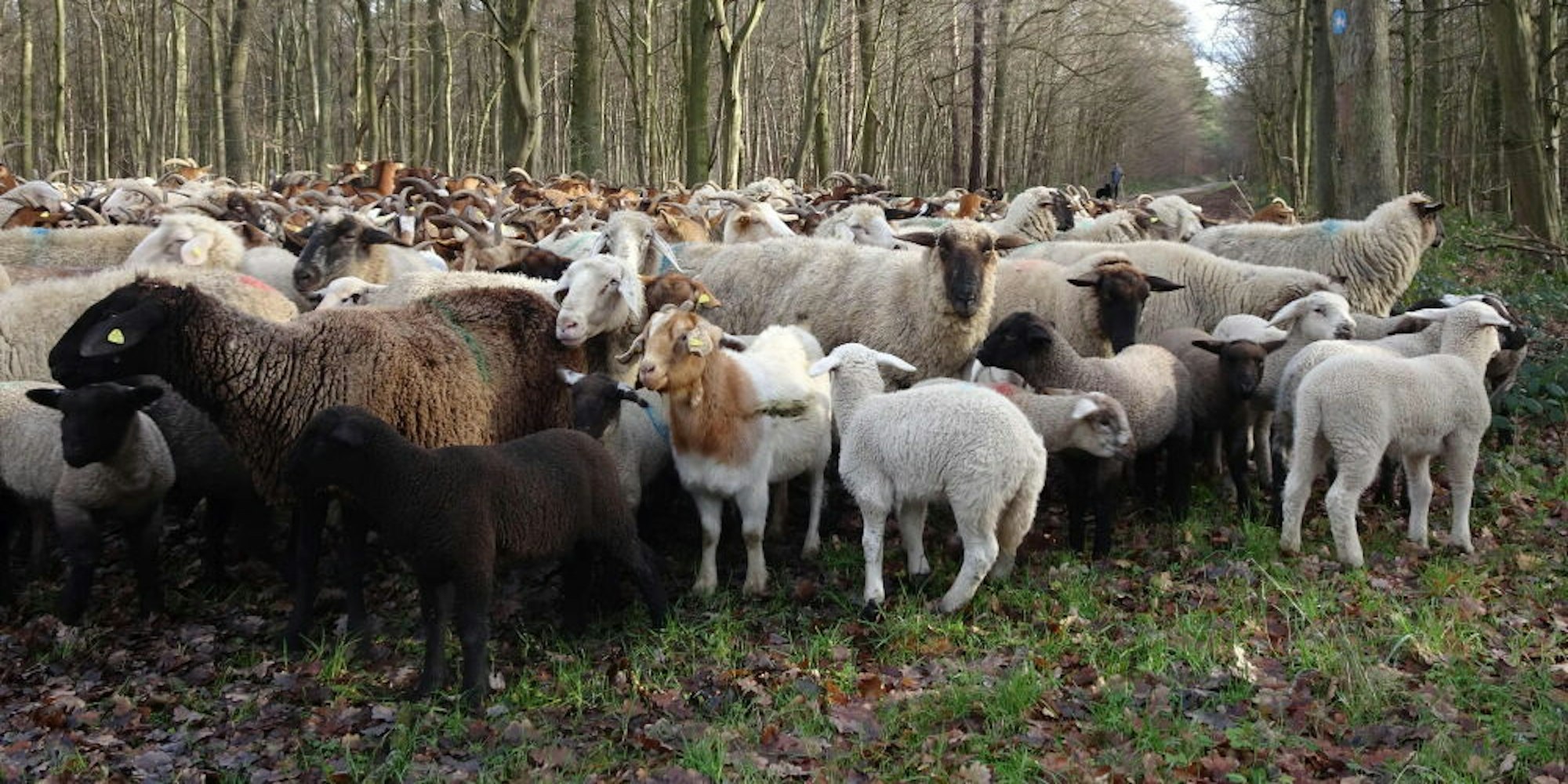 Begegnungen im Wald: Der Schäfer Josef Burbach aus Duisdorf durchquert den Wald gelegentlich mit seiner Herde. Im Januar war er mit etwa 400 Mutterschafen und 100 Ziegen von einer Weide bei Buschhoven aus in Richtung Heimerzheim gezogen.