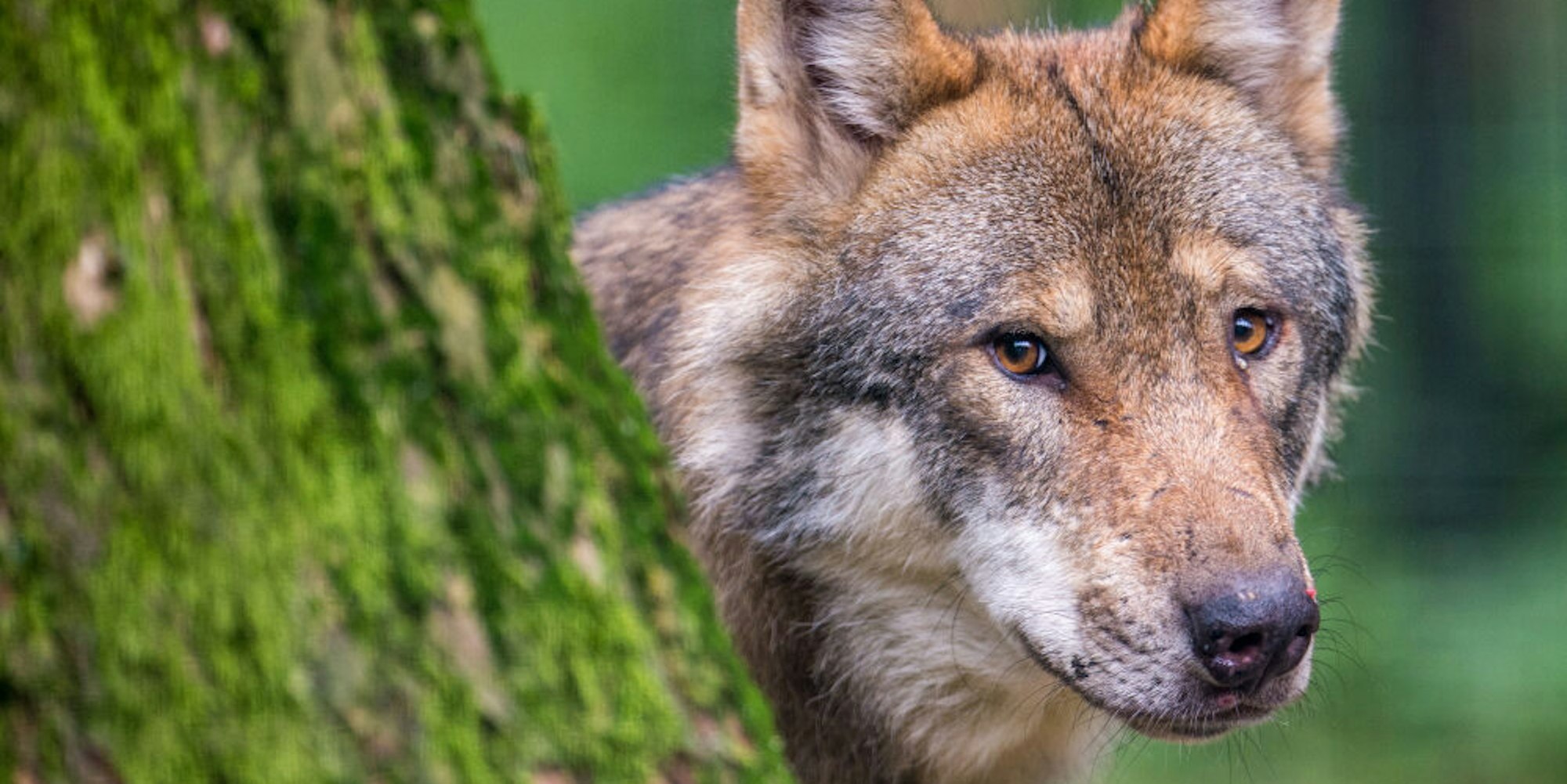Ein Wolf in einem Wildpark in Bayern.
