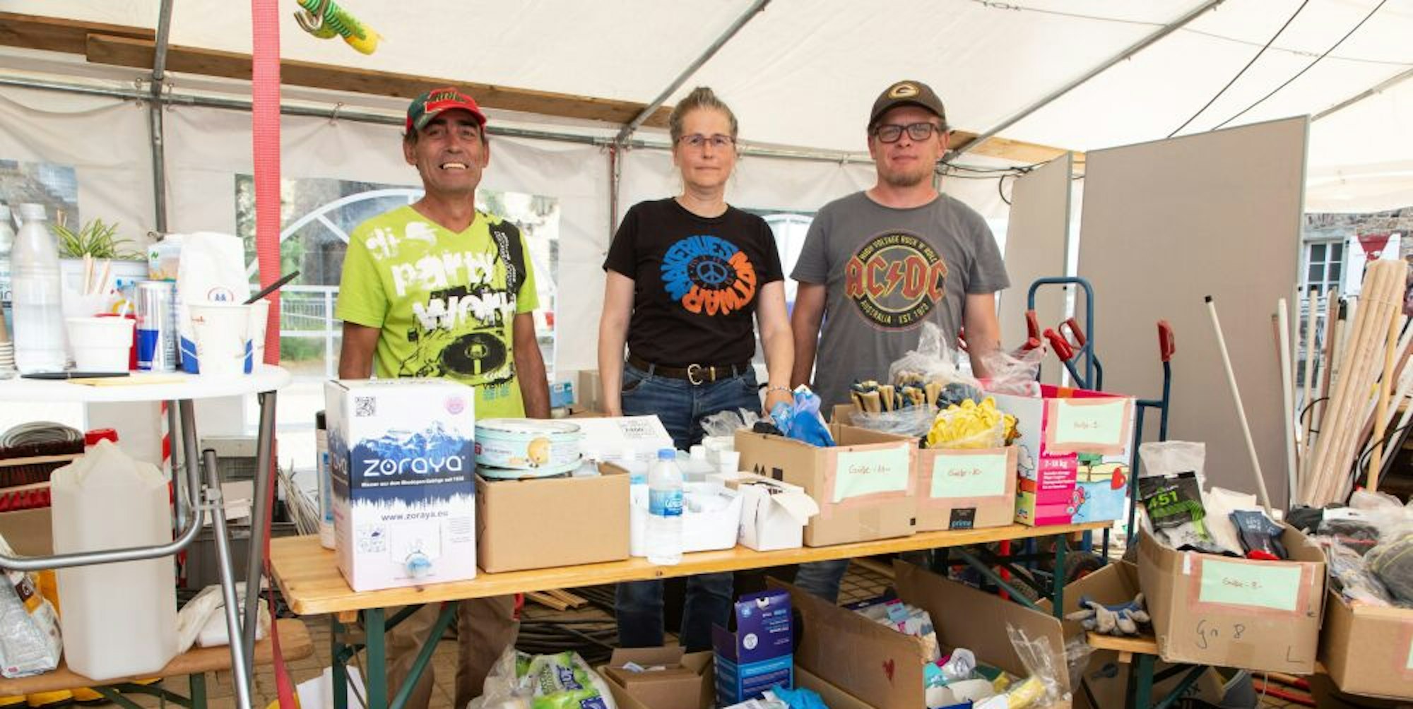 Swisttal – Was die Freiwilligen am Infozelt in Odendorf in den vergangenen Wochen geleistet haben, das sprengt jeden Rahmen eines Vollzeitjobs. Im Schnitt berichtet Kai Imsande von zehn Stunden Arbeit täglich, sieben Tage die Woche, die rund 15 Helfer bei der Koordination und Organisation im Swisttaler Ort mitanpacken. 150 Stunden Helfen – täglich. Imsande ist in seine Rolle reingerutscht, genauso wie Armando da Rocha, der täglich an der Essensausgabe auf dem Zehnthof die Teller füllt, deswegen nennen die Odendorfer das die Suppenküche nur noch liebevoll „Café Armando“. Auch Dr. Arletta Kösling aus der Orbachstraße gehört zum Team und kämpft dabei für ihren Ort.