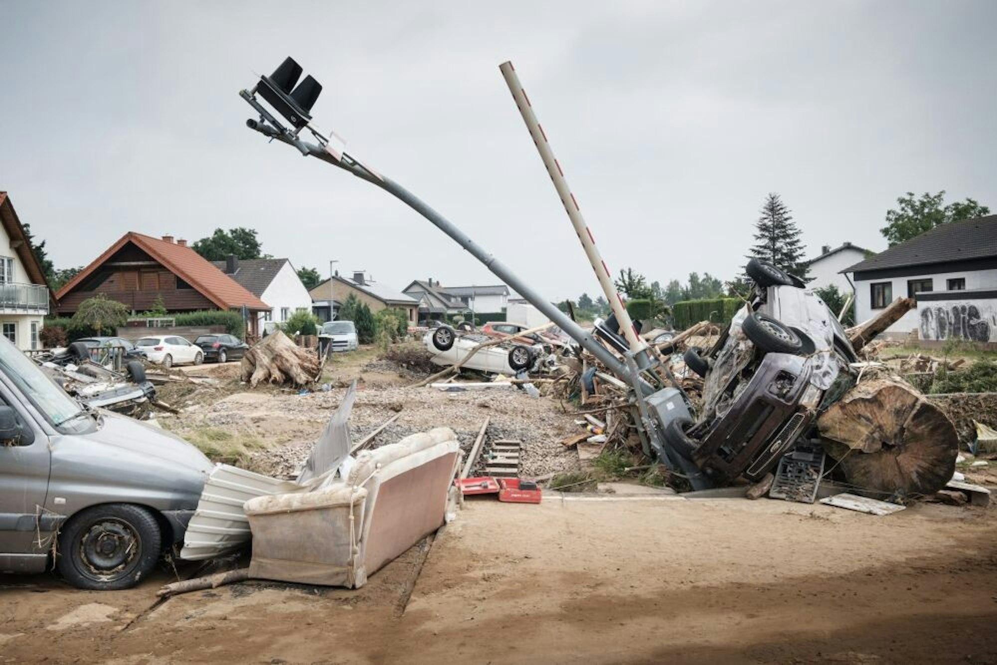 Die Wucht der Zerstörung durch die Wassermaßen war in Odendorf deutlich zu erkennen. Autos wurden in den Bach und auch auf die Bahnschienen gedrückt.