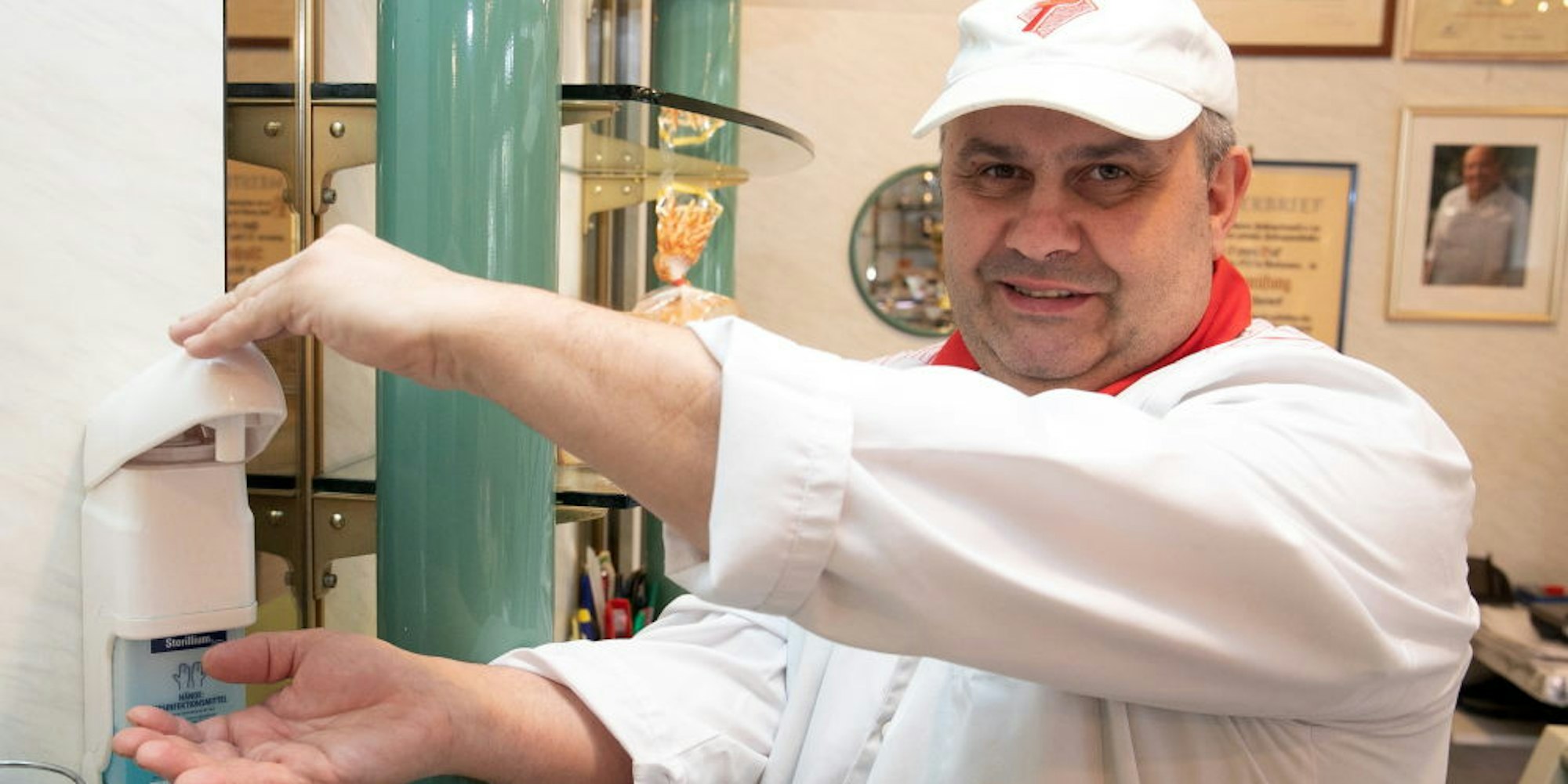 Metzgermeister Adalbert Wolf hat die Hygienestandards in seinem Betrieb angesichts der Corona-Krise noch einmal erhöht.