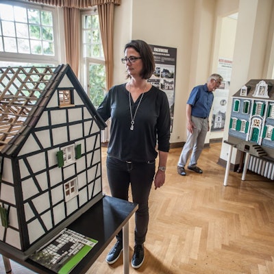 Und dort warten nun also Zeichnungen unter anderem der Villa Römer, der Schiffsbrücke an der Wuppermündung, die Fachwerkhäuser Bergisch Neukirchens, die Neue Bahnstadt, der Wildpark Reuschenberg, das Schloss Morsbroich, die Doktorsburg oder der Obstweg darauf, dass Kinder oder malwütig gebliebene Erwachsene die Bunt- oder Filzstifte zücken und das Schwarz-Weiß der Linien mit Farbe füllen.
