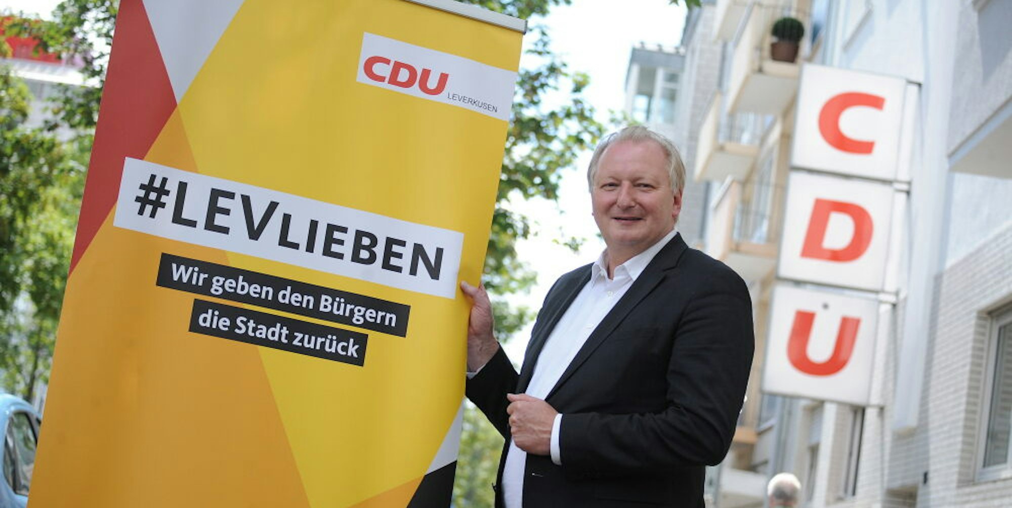 Bei der CDU werden sie den Parteivorsitzenden Frank Schönberger zeigen. Der hat schon nach der vorigen Oberbürgermeister-Wahl verkündet, dass er 2020 Rathaus-Chef werden will. Schwarz-rot-gelb dominiert seine Wahlwerbung und der Slogan #LEVlieben ist der Titel seiner Kampagne, die ganz auf Heimatliebe basiert und ein uneingeschränktes Bekenntnis zu der Stadt sein soll, in der Schönberger seit seiner Geburt 1959 immer gelebt hat.