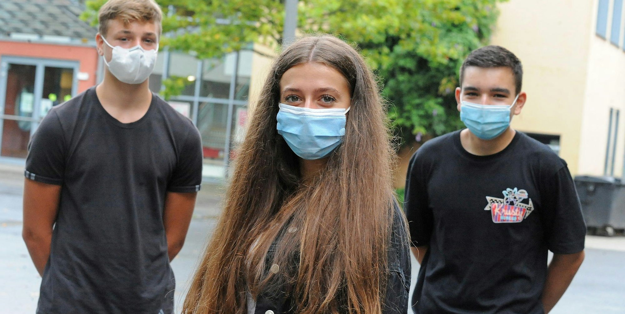 Maskenpflicht nun auch in der Umgebung von Schulen. Dem Beispiel dieser Sekundarschüler sollen fortan alle Schülerinnen und Schüler folgen.