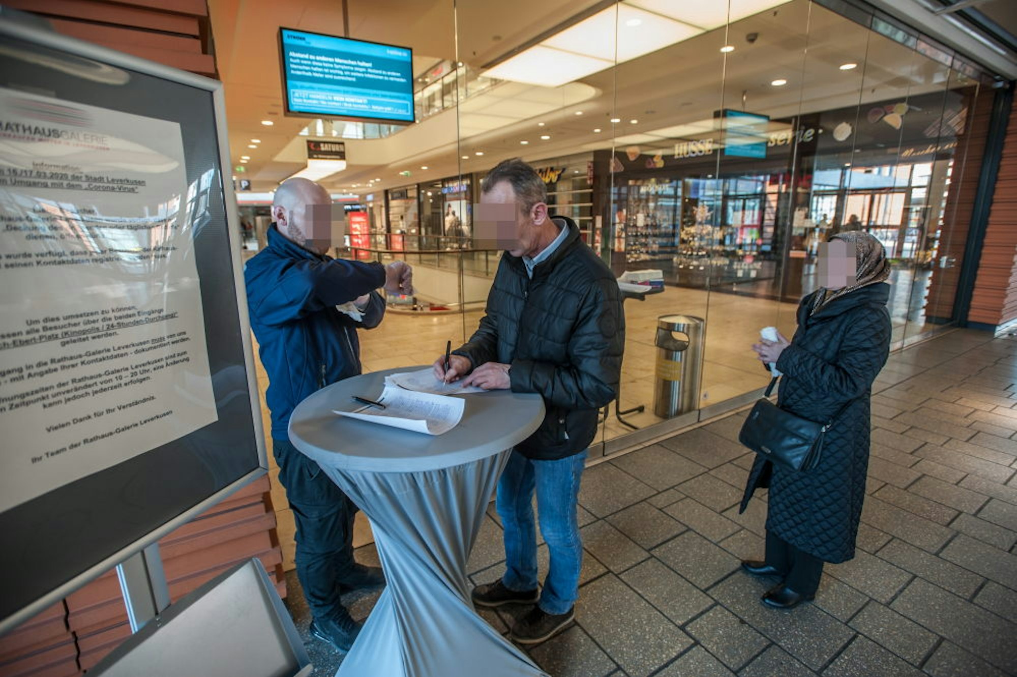 Vor dem Haupteingang gibt es vereinzelte Schlangen von Menschen, die den Supermarkt oder Apotheken aufsuchen möchten, sich zuvor aber in Namenslisten eintragen müssen, die bei Eingangskontrollen geführt werden, doch der Rest des Leverkusener Konsumtempels liegt völlig unnatürlich für einen Mittwochmittag ausgestorben dar.