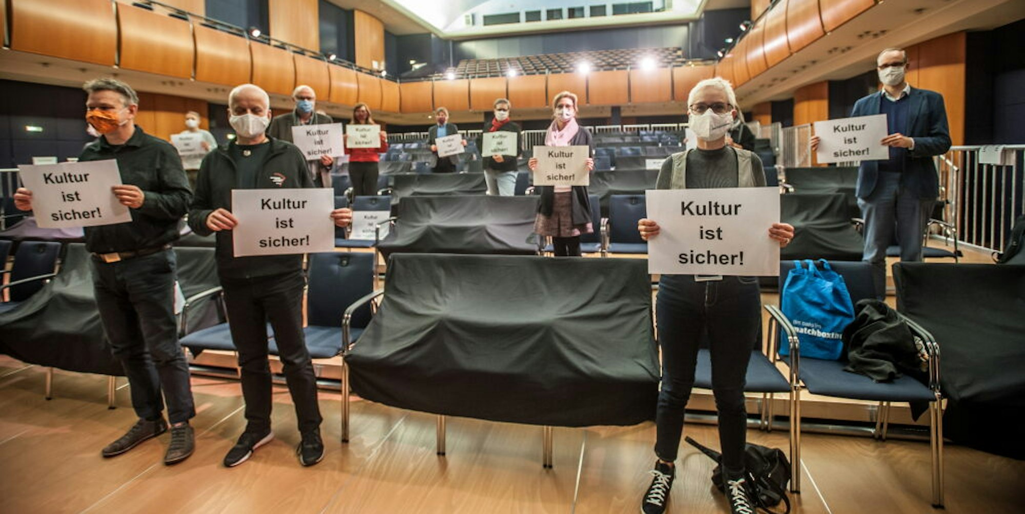 Leverkusen – Die Ohnmacht war spürbar im Saal. Getrennt voneinander sitzend und mit Masken im Gesicht hatten sich Leverkusens Kulturmacher versammelt, um über den neuerlichen Shutdown wegen der Pandemie und das erneute Aus für den Spielbetrieb in Sachen Konzert und Theater zu beratschlagen. Oder, um es auf den Punkt zu bringen: Sie hatten sich getroffen, um sich des gegenseitigen Rückhaltes zu versichern und allen anderen dort draußen das zu zeigen, was sie schließlich gedruckt auf weißen Plakaten in die Höhe hielten: „Kultur ist sicher“.