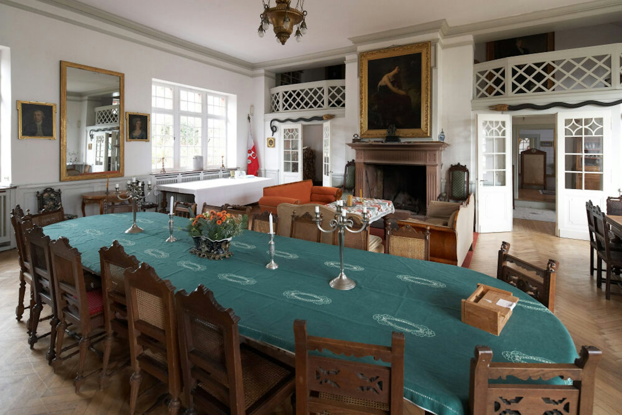 Im Saal des Gutshofes der Familie Greve-Dierfeld finden Sitzungen und Wahlen statt(o.).