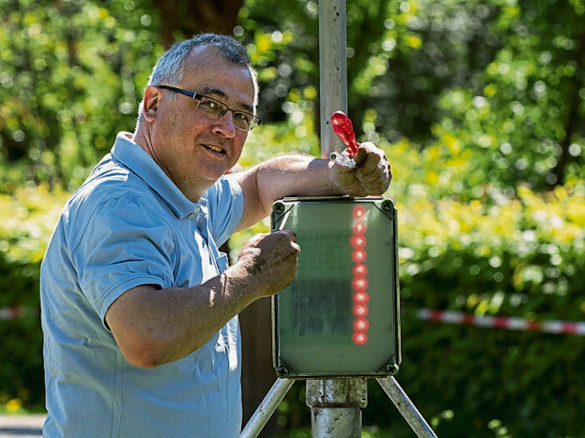 Mit dem Bagger Grasnarben zu entfernen, um Wildblumenwiesen anzulegen, ist für Hans-Georg Koch kein Problem. Der gelernte Maschinenbauingenieur hat lange im Bereich Fahrzeugtechnik gearbeitet. Außerdem sei er in einer Spedition groß geworden, sagt der 61-Jährige. „Da begeistert man sich schnell für jede Art von Fahrzeugen.“ Während seine beiden jungen Kollegen den Sand und die Erde für das Beet auffüllen, repariert er inzwischen die Digitalanzeige der Solaranlage.