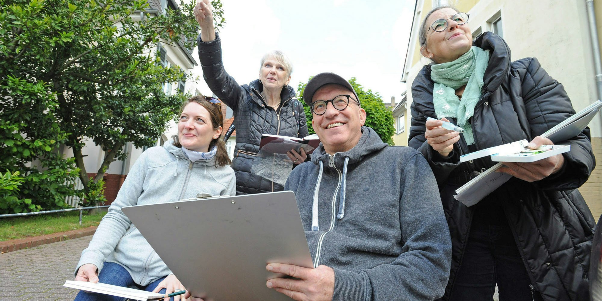 Einen Teil dieser Mission holte Barbara Melchers, Geschäftsführerin des Sozialpsychiatrischen Zentrums (SPZ), jetzt auch nach Leverkusen. Im Herzen von Wiesdorf trafen sich rund 15 Urban Sketchers der Regionalgruppe Düsseldorf/Köln zu einem sogenannten „SketchCrawl“ – einem gemeinsamen Zeichentreff, bei dem vor allem die Kolonie II Motiv für ihre Kunstwerke sein sollte. Die Ergebnisse werden bei der diesjährigen Leverkusener Kunstnacht in der Tagesstätte der SPZ ausgestellt. Getreu des Mottos „Sozialpsychiatrie trifft Kunst“.