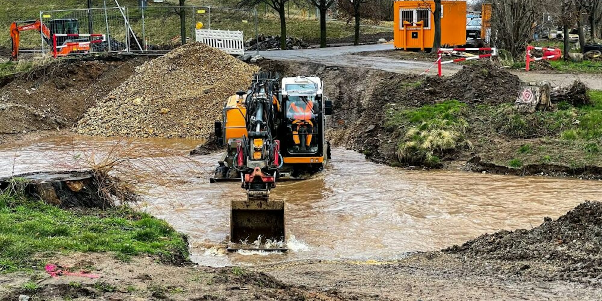 Am Montag arbeitete der Erftverband in der Erft in Euskirchen.