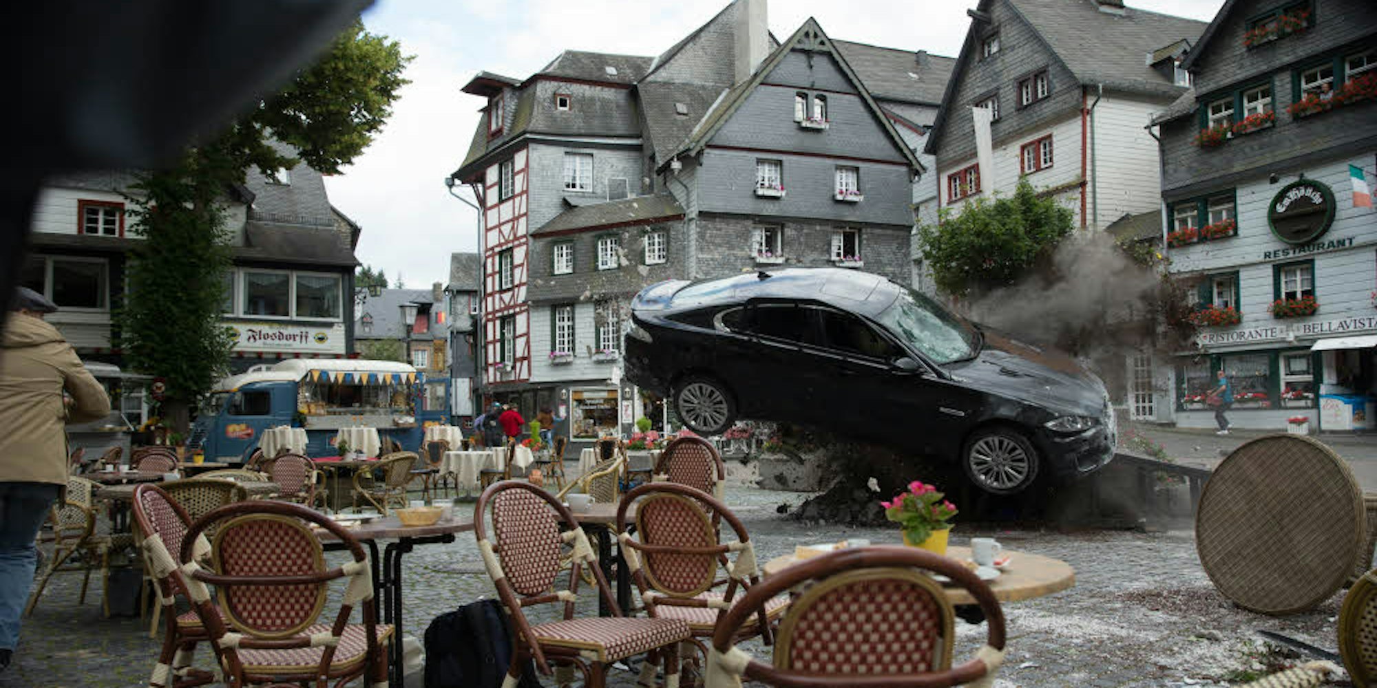 Rasante Actionszenen wurden für den jetzt anlaufenden Thriller „Collide“ auf dem Monschauer Marktplatz gedreht. Einige Sekunden Filmmaterial kann man auch bei „Youtube“ bestaunen.