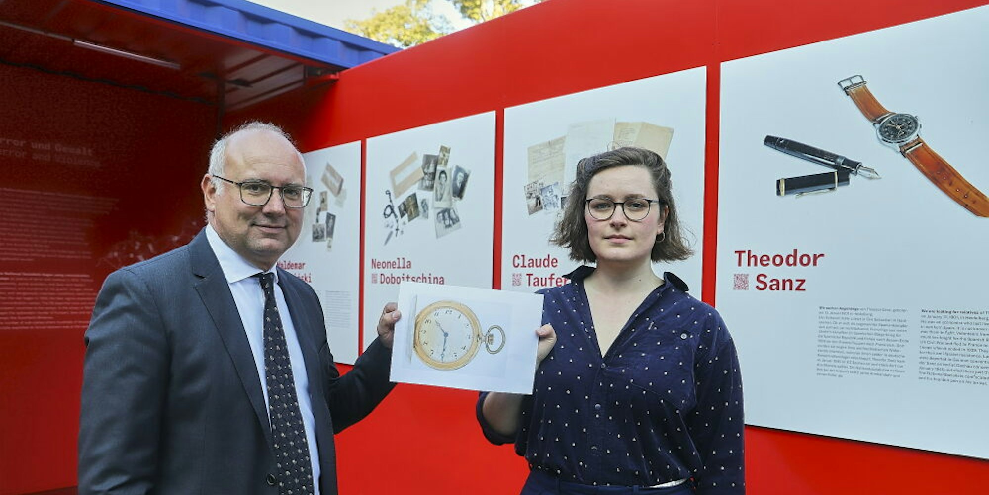 Heimbach – Eigentlich ist es nur eine alte Taschenuhr. Doch auch 77 Jahre nachdem sie ihrem Besitzer weggenommen wurde, wird noch nach dessen Nachkommen gesucht, um sie zurückzugeben. Charlotte Großmann von den Arolsen Archives benutzte die Uhr, um das Projekt „Stolen Memories“ zu veranschaulichen. Auf dem Parkplatz Laag hat sie eine Ausstellung über die Aktion eröffnet. Eingebaut ist sie in einen Überseecontainer, der an verschiedenen Orten Station macht. Familiäre Verbindungen machten möglich, dass einer der drei Container, die in Deutschland und jetzt auch in Polen immer wieder aufgestellt werden, für vier Wochen in Heimbach Station macht.