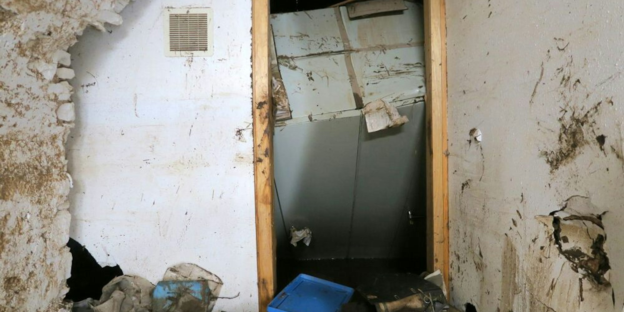 Ein tonnenschweres Hindernis versperrte den Eingang. Einige Schlitten der Kompaktanlage wurden nur noch von einer Rigipswand gehalten. Im Archiv herrschte nach der Flut Chaos.