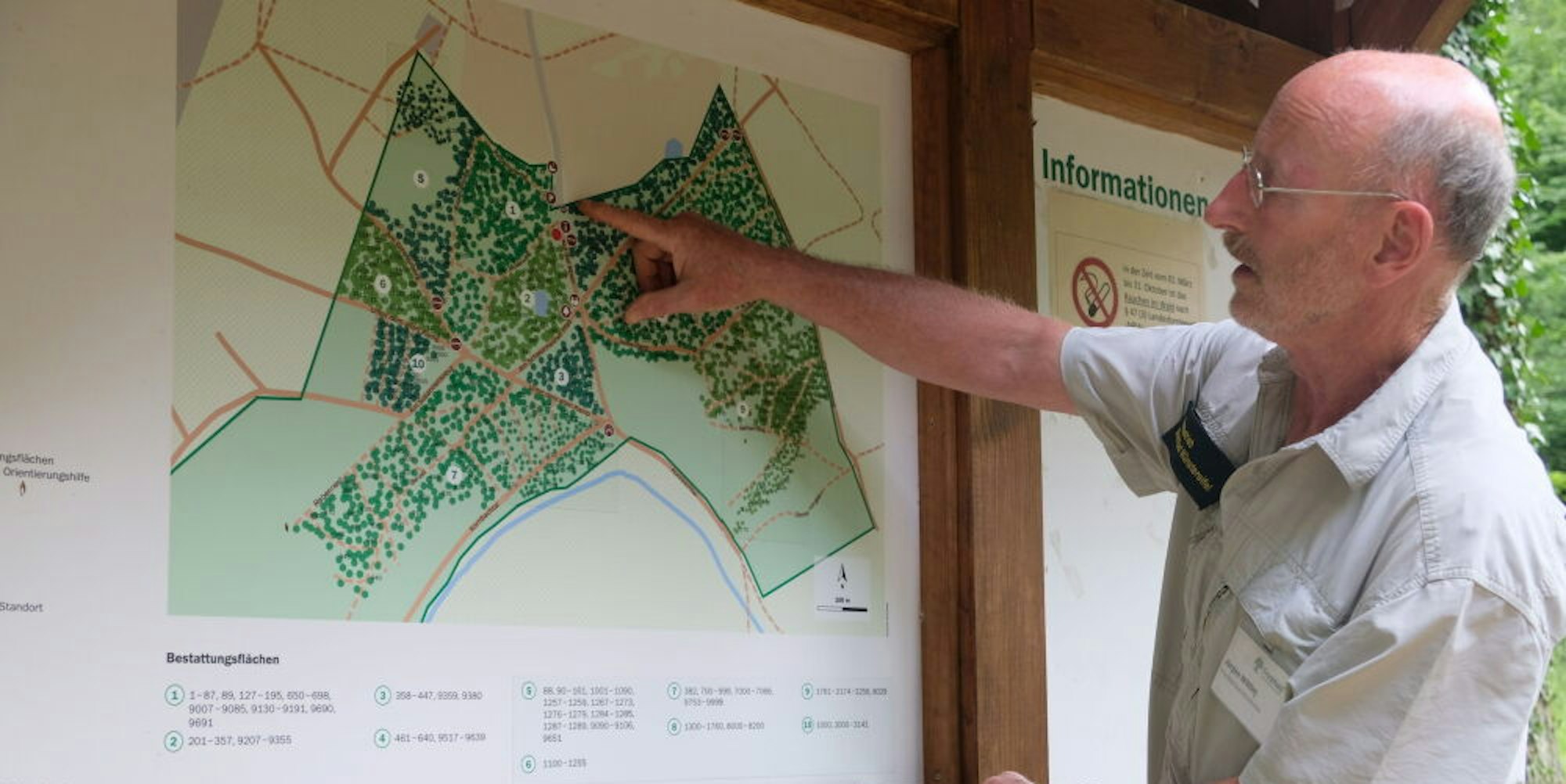 Friedwald-Förster Jürgen Wittler und seine Kollegen erklären Besuchern der Einrichtung gerne, wo sie den Baum mit der letzten Ruhestätte ihres Verstorbenen finden und welche Baumarten dort anzutreffen sind.