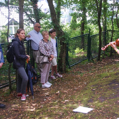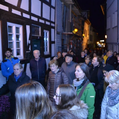 Zur Enthüllung der Gedenktafel waren auch Delegationen der Partnerstädte Bad Münstereifels, Ashford und Fougères, mit den Bürgermeistern Jenny Webb und Louis Feuvrier gekommen. „Mein Dank geht an alle, die mitmachen, um diese Erinnerungskultur immer und immer wieder mit Leben zu füllen“, sagte der Vorsitzender des Vereins Alter Münstereifeler, Michael Nücken: „Das ist das Mindeste, welches unsere Stadt an Ehre geben konnte!“ Nach der feierlichen Enthüllung gab es für die Gäste Getränke und Häppchen vom Bistro „Le Petit“, das sich heute im besagten Haus am Entenmarkt befindet.
