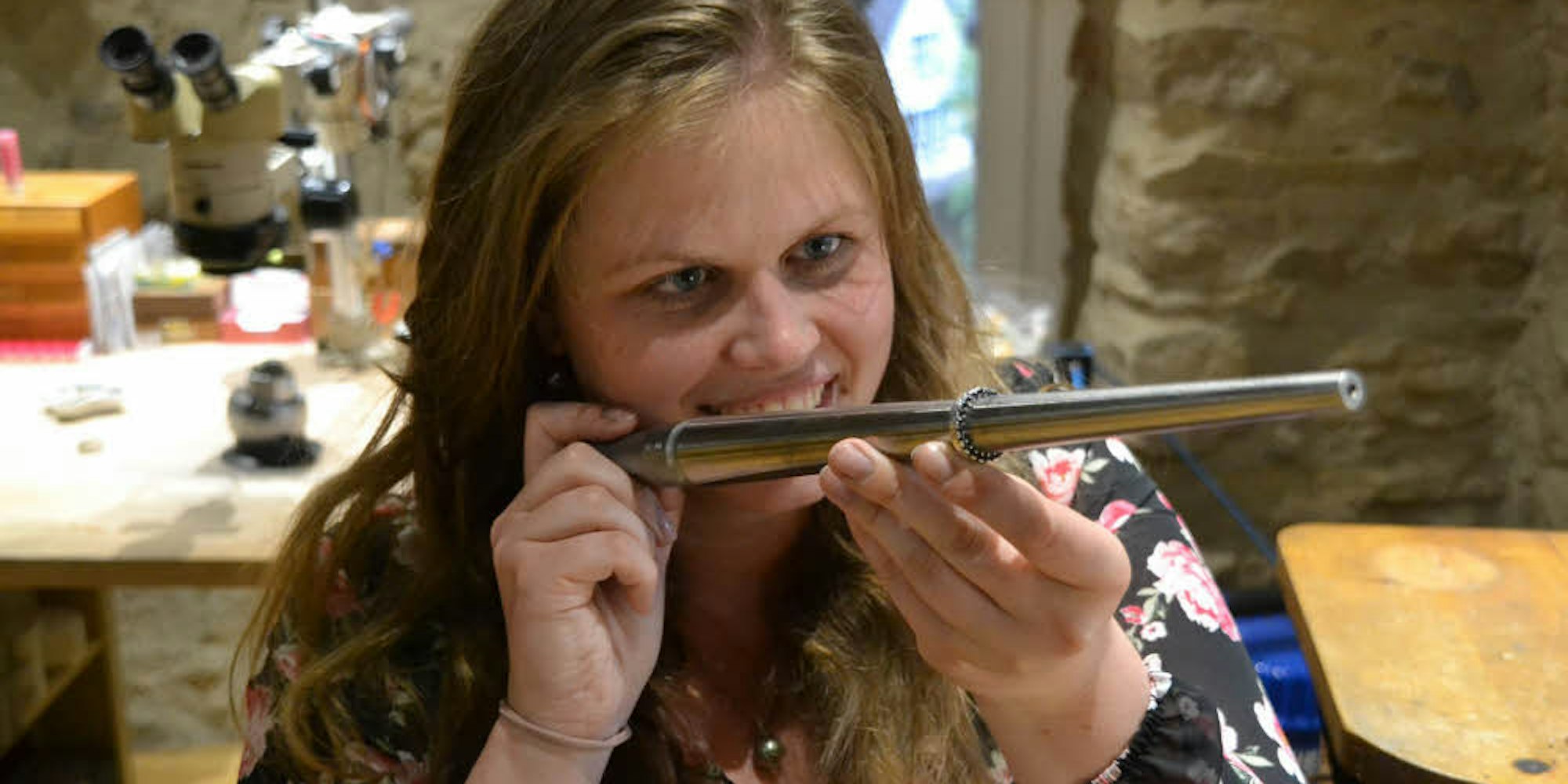 In Solingen hatte die 29-jährige das Goldschmiedehandwerk erlernt und in Münster und Idar-Oberstein sowohl ihren Meisterkursus als auch Fortbildungen zur Diamantgutachterin und Edelsteinfasserin absolviert.
