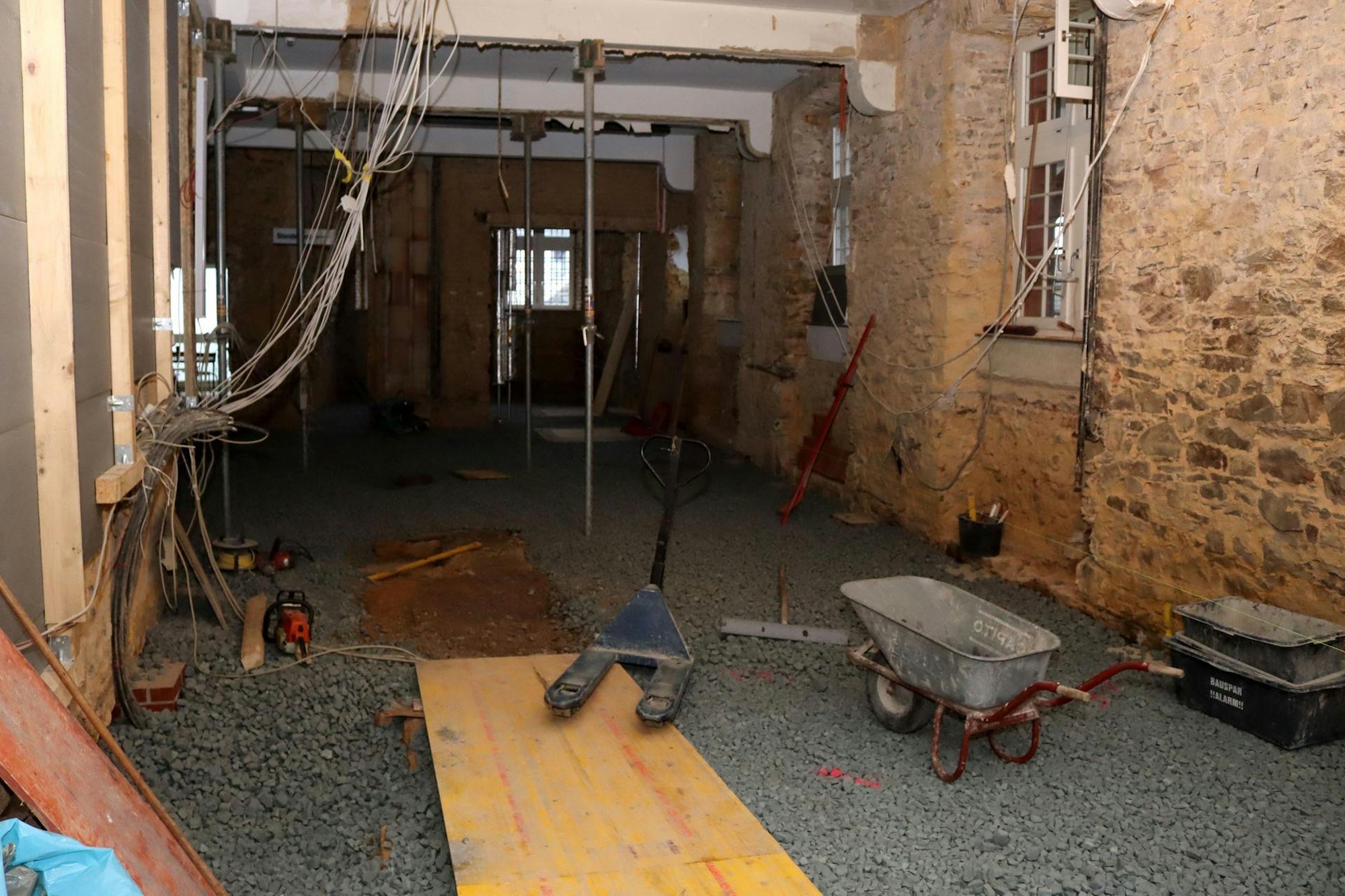 Die Stadt setzt bei der Sanierung auf Nachhaltigkeit in Form einer kontrollierten mechanischen Be- und Entlüftung mit Wärmerückgewinnung und Fußbodenheizung. Die Stahlbetondecke ist mittlerweile eingezogen. Das Gewölbe darunter war von der Flut nicht betroffen.