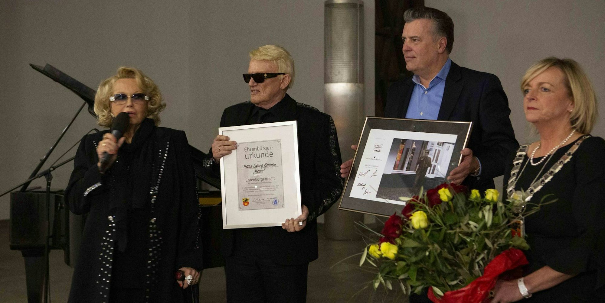 Bad Münstereifel – Geschafft! Was lang währt, wird endlich gut. Im Rahmen des Neujahrsempfangs der Kurstadt verlieh Bürgermeisterin Sabine Preiser Marian (CDU) Volkssänger Heino, der mit bürgerlichem Namen Heinz-Georg Kramm heißt, die Ehrenbürgerrechte.