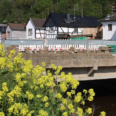 Auf dem Weg zurück in Richtung Werther Tor informiert sich Stamp über mögliche Hochwasserschutzmaßnahmen. In der Stadt, sei das geradezu unmöglich, erklärt Preiser-Marian. Die Erft fließt nun einmal mitten durch Bad Münstereifel.