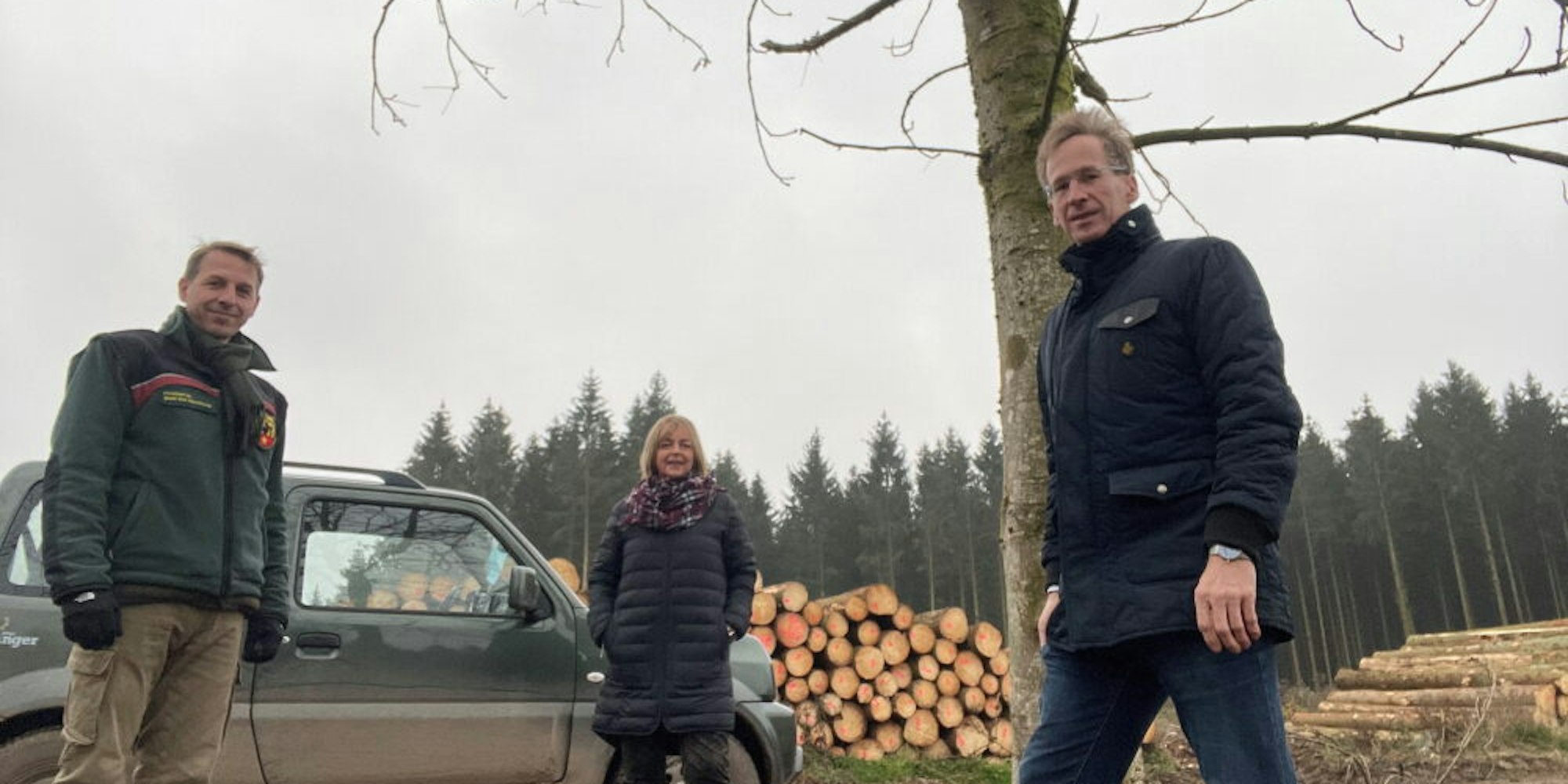 Schauten sich das Drama im Effelsberger Wald an: Forstleiter Stefan Lott (von links), Bürgermeisterin Sabine Preiser-Marian und Bundestagsabgeordneter Detlef Seif (CDU).